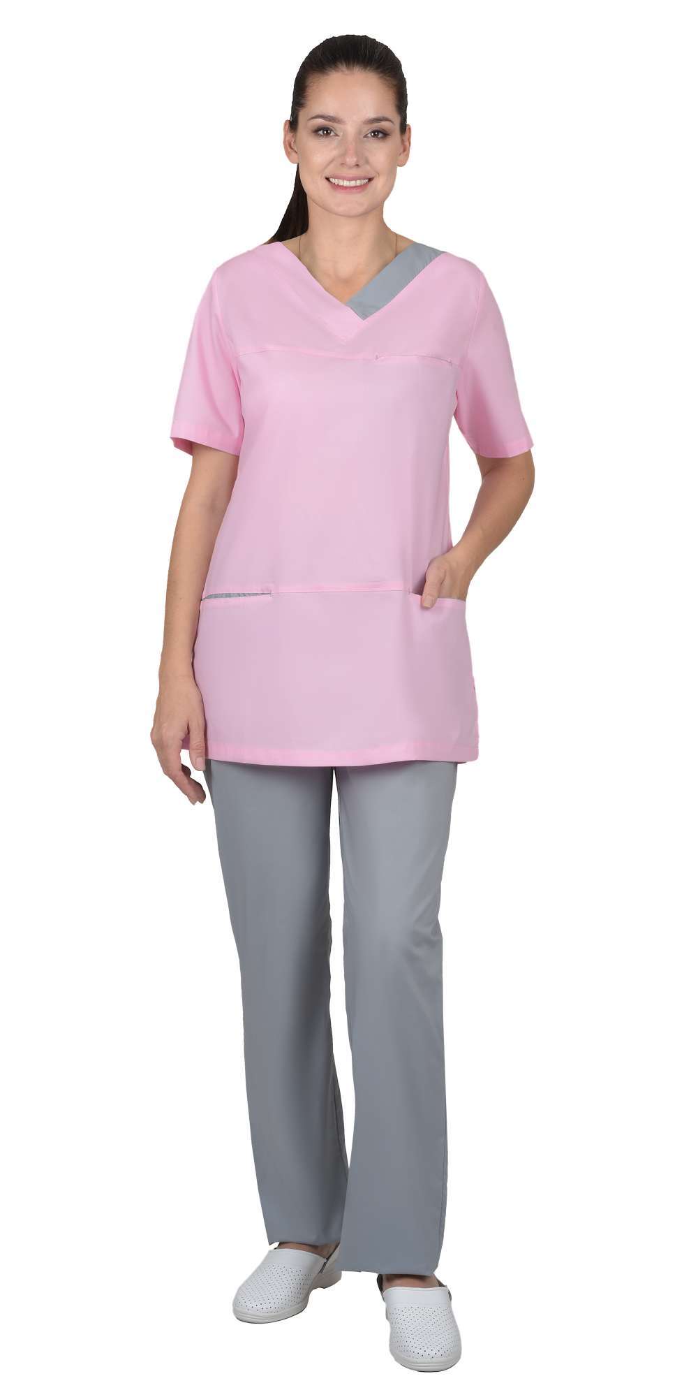 Костюм СИРИУС-КЭТРИН — это идеальное решение для медицинских учреждений и предприятий, где требуется стильная и функциональная униформа для женщин. Комбинированный дизайн в розовом и сером цветах не только привлекает внимание, но и создает профессиональный образ, способствуя комфортной работе в течение всего дня.