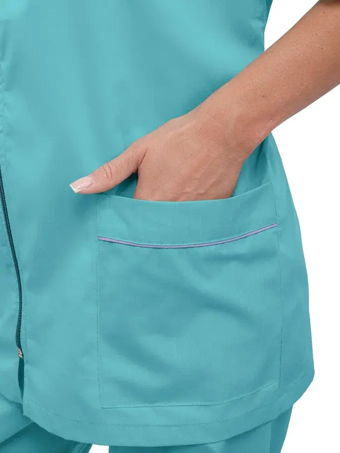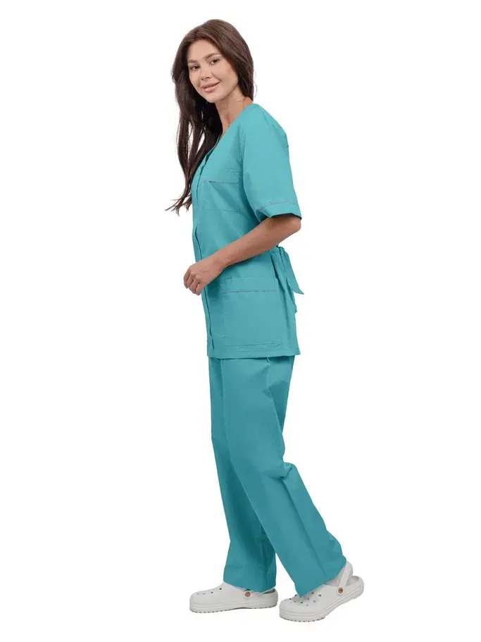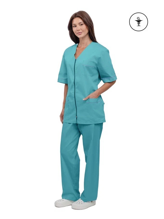 Представляем вашему вниманию женский костюм «Глория» в бирюзовом цвете с сиреневыми акцентами. Этот современный и стильный комплект идеально подходит для работников сферы косметологии и медицинских учреждений. Его ключевые преимущества — это удобство, прочность и презентабельный внешний вид, что делает его незаменимым в повседневной работе.