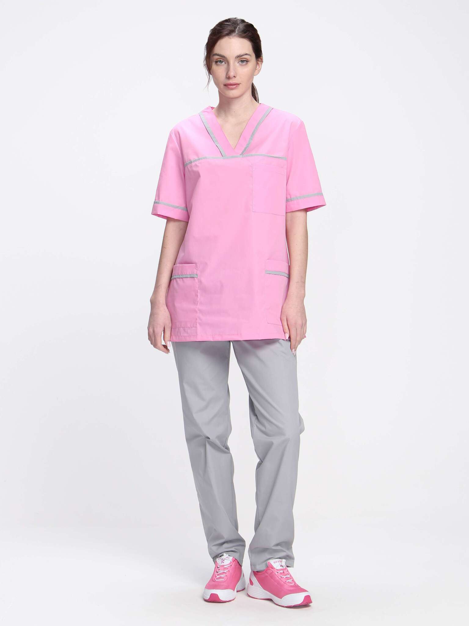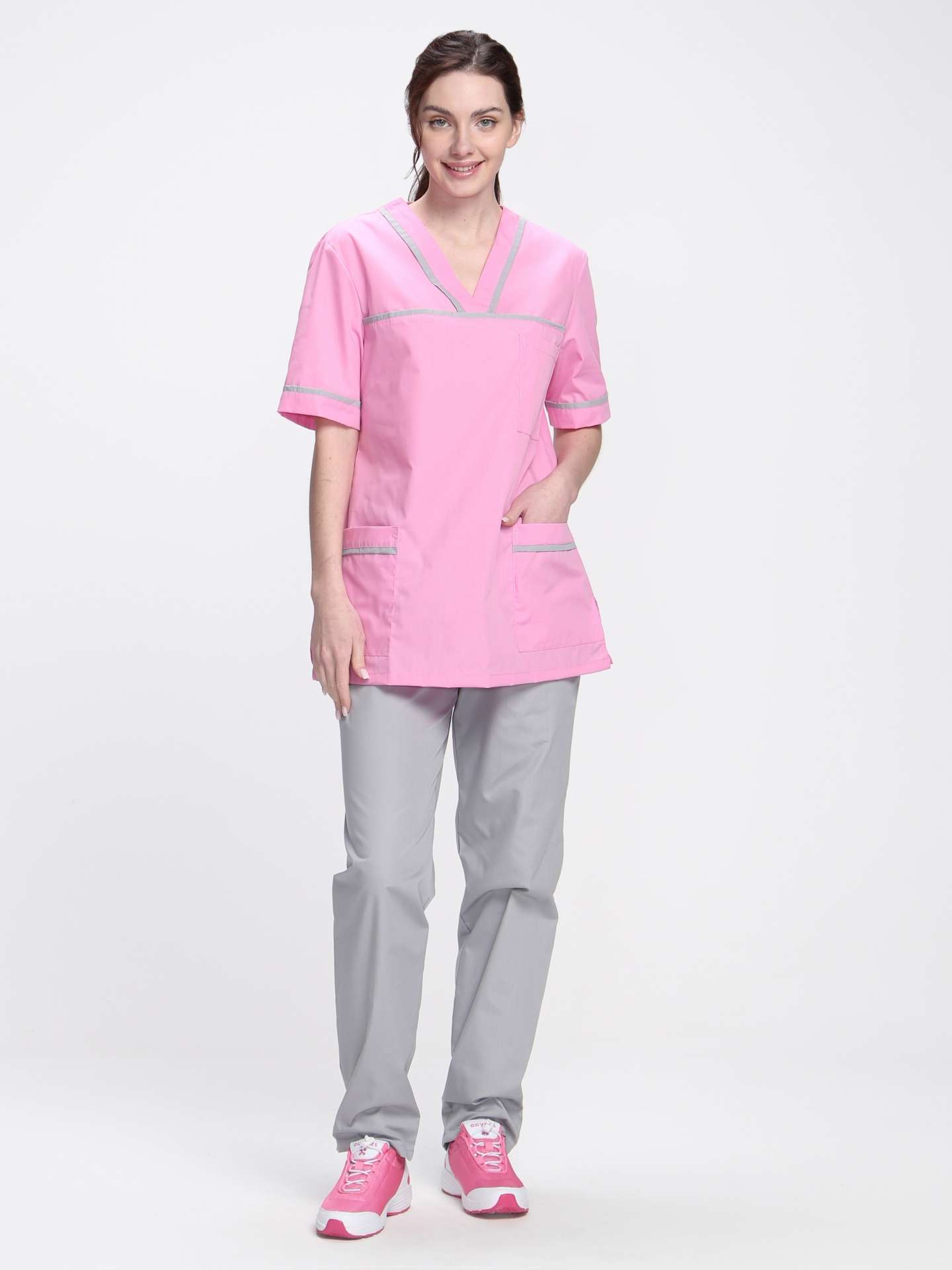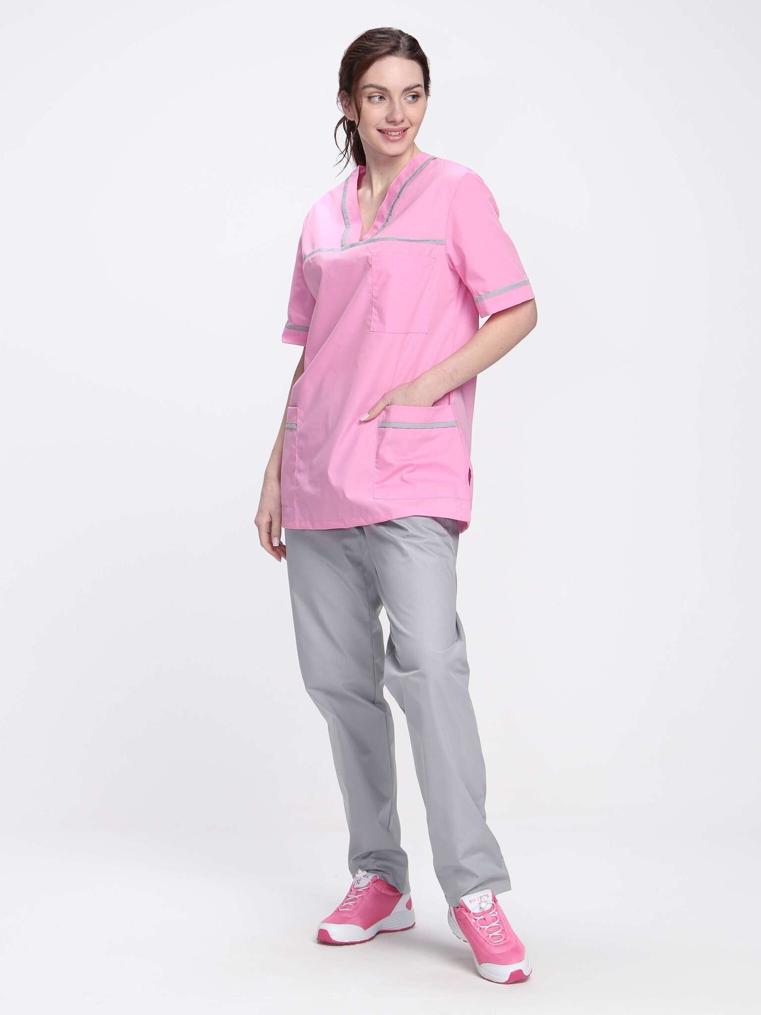 Стильный женский медицинский костюм «Ирис» в ярко-розовом и сером цветах - это не просто одежда, а надежный помощник для сотрудниц медицинских учреждений, салонов красоты, массажных кабинетов и стоматологий. Его ключевые преимущества заключаются в сочетании комфорта, практичности и современного дизайна, что позволяет чувствовать себя уверенно и стильно в любой ситуации.