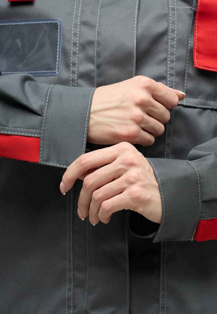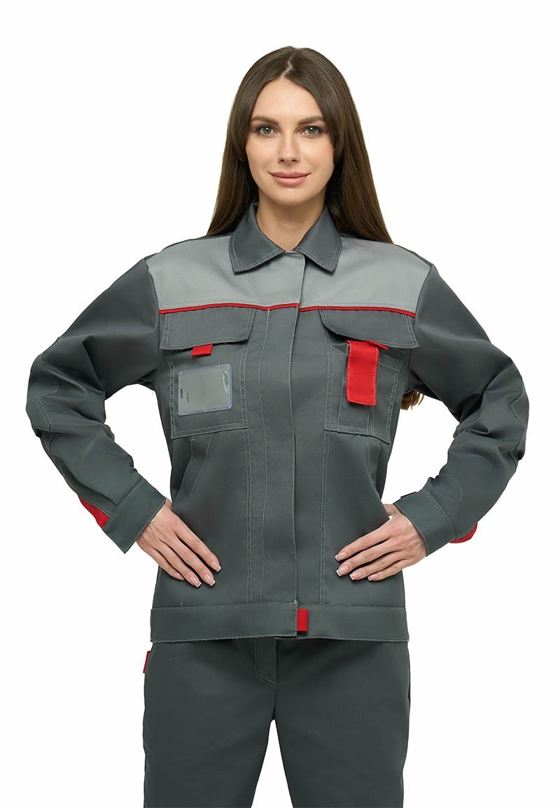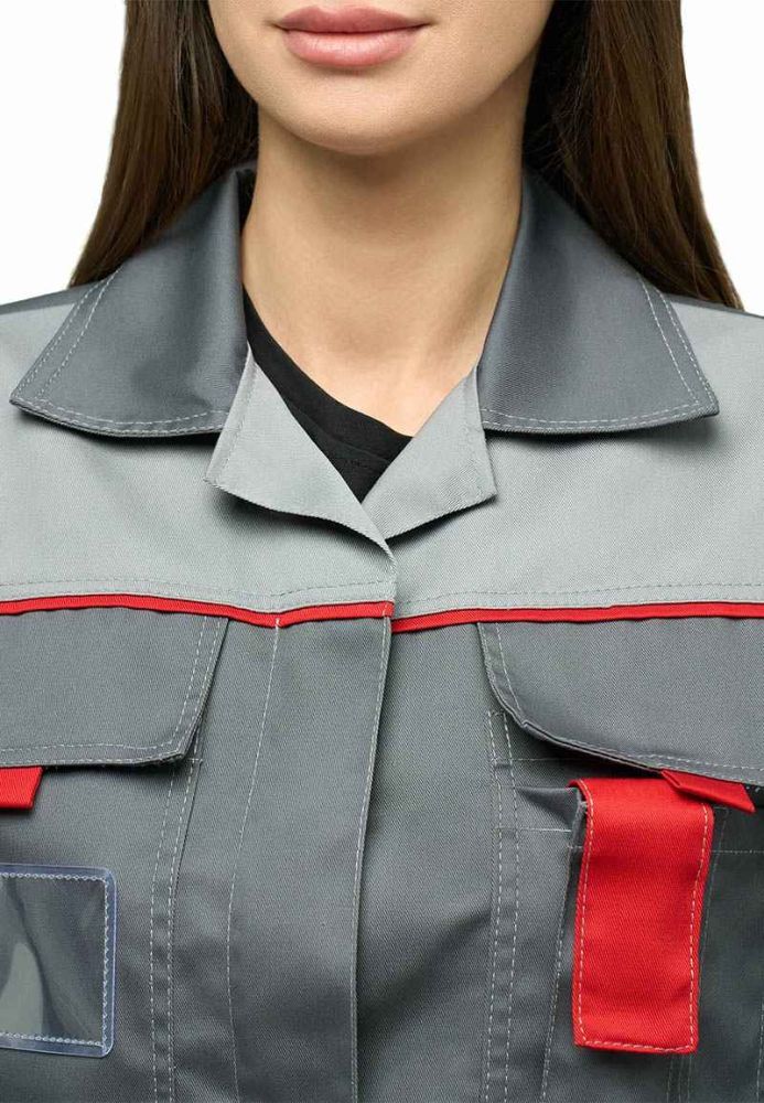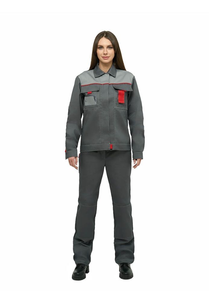 Костюм женский КАМА серый с красным Л10-КБР (куртка + брюки) Минпромторг