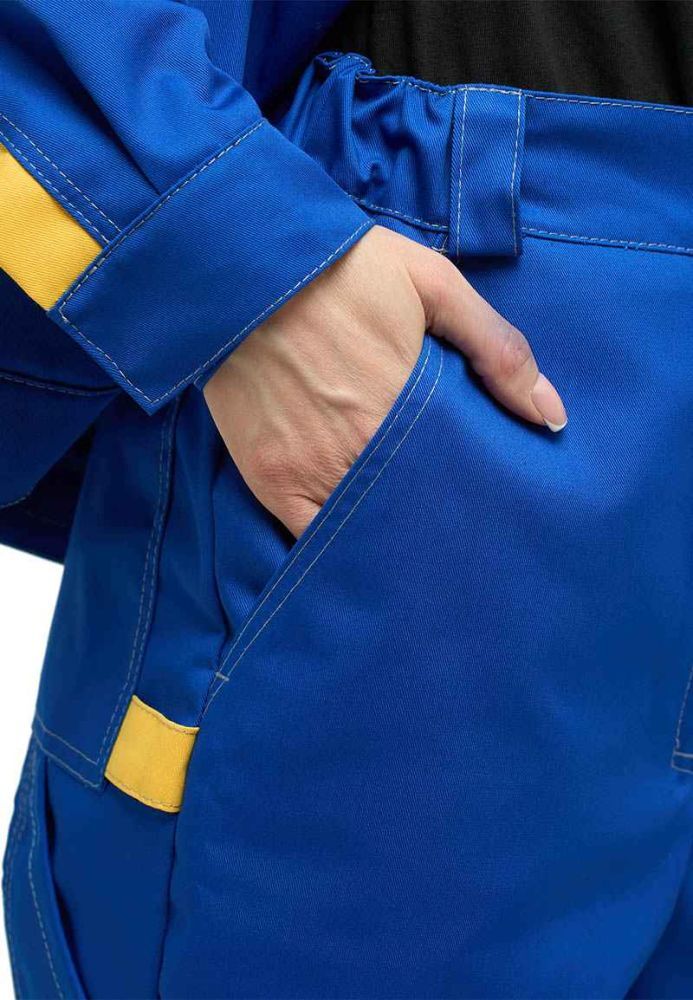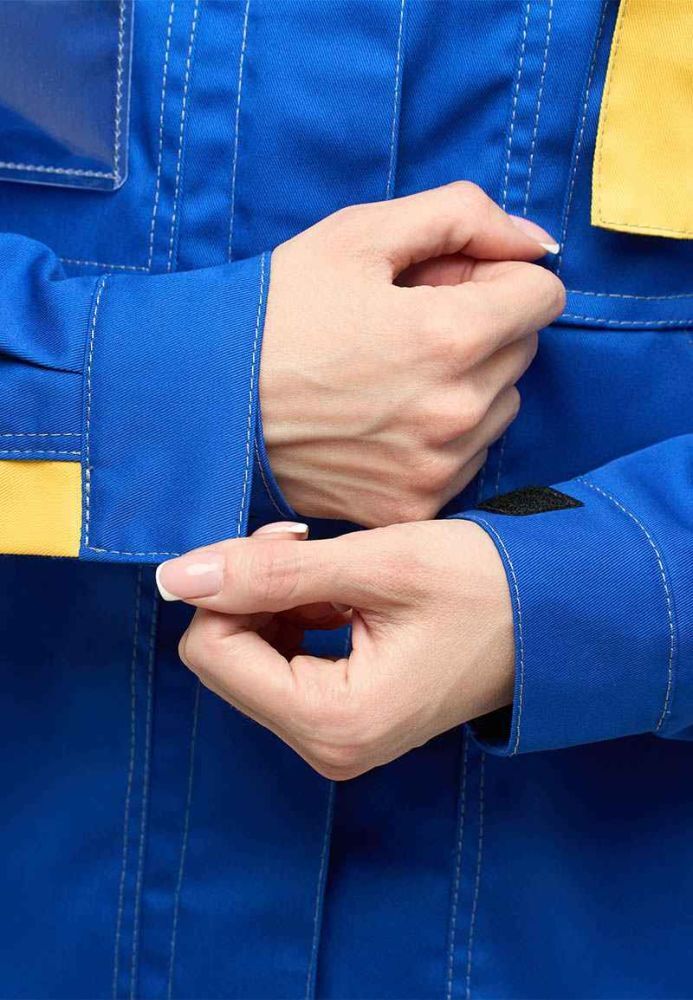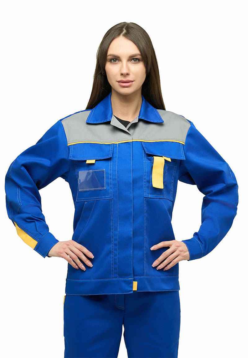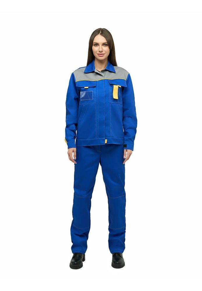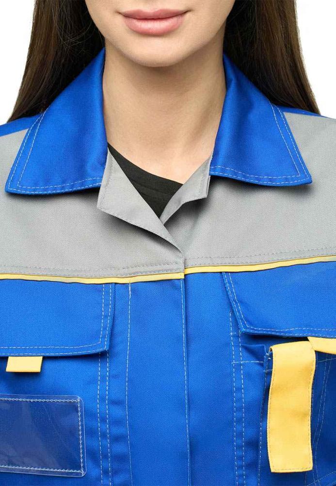 Представляем вам женский костюм КАМА в васильковом цвете с серыми и желтыми вставками, который станет надежным помощником в любой профессиональной среде. Изготовленный из высококачественной смесовой ткани, этот костюм обеспечивает защиту от общепроизводственных загрязнений и удобство в работе. Его современный дизайн и функциональные особенности делают его идеальным выбором для предприятий и заводов.