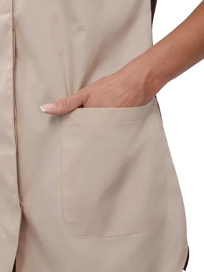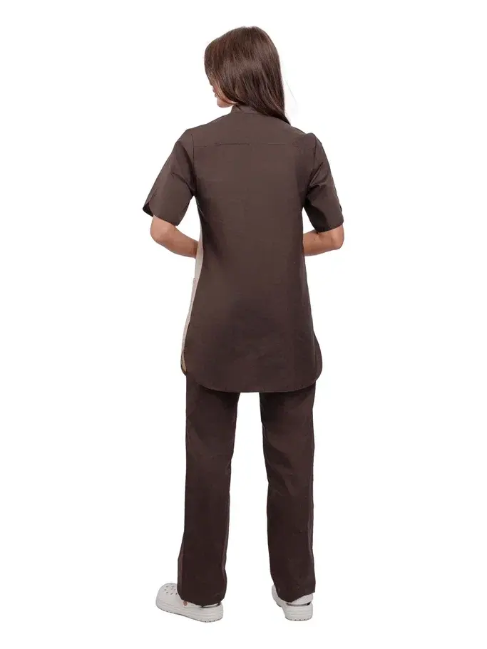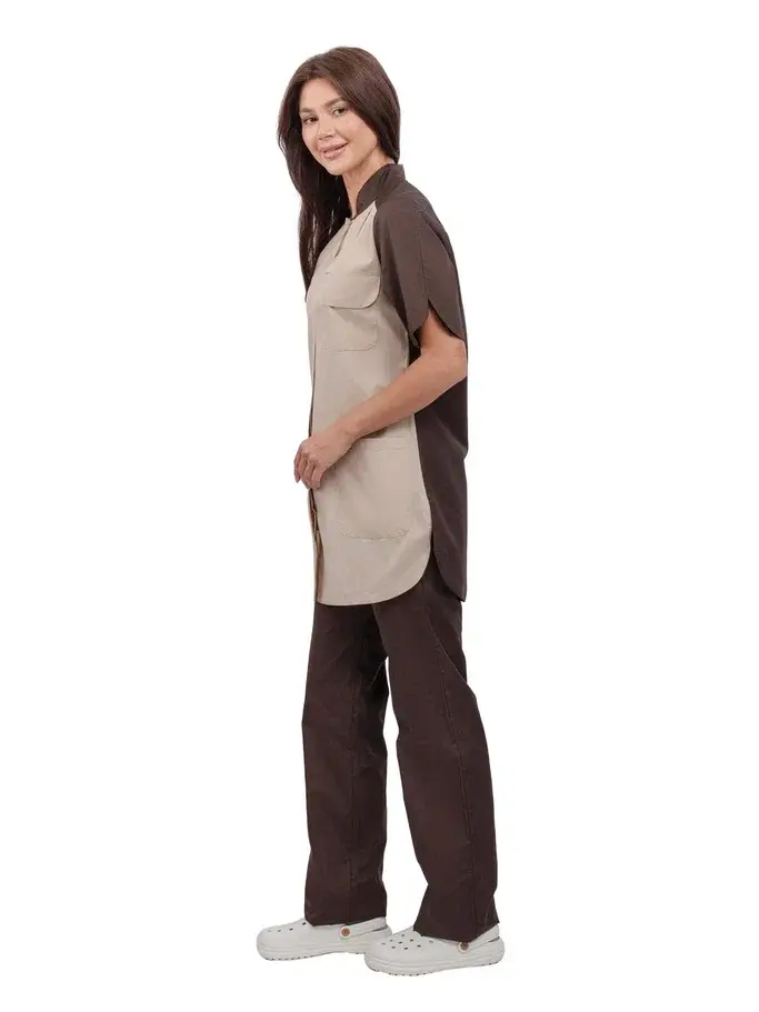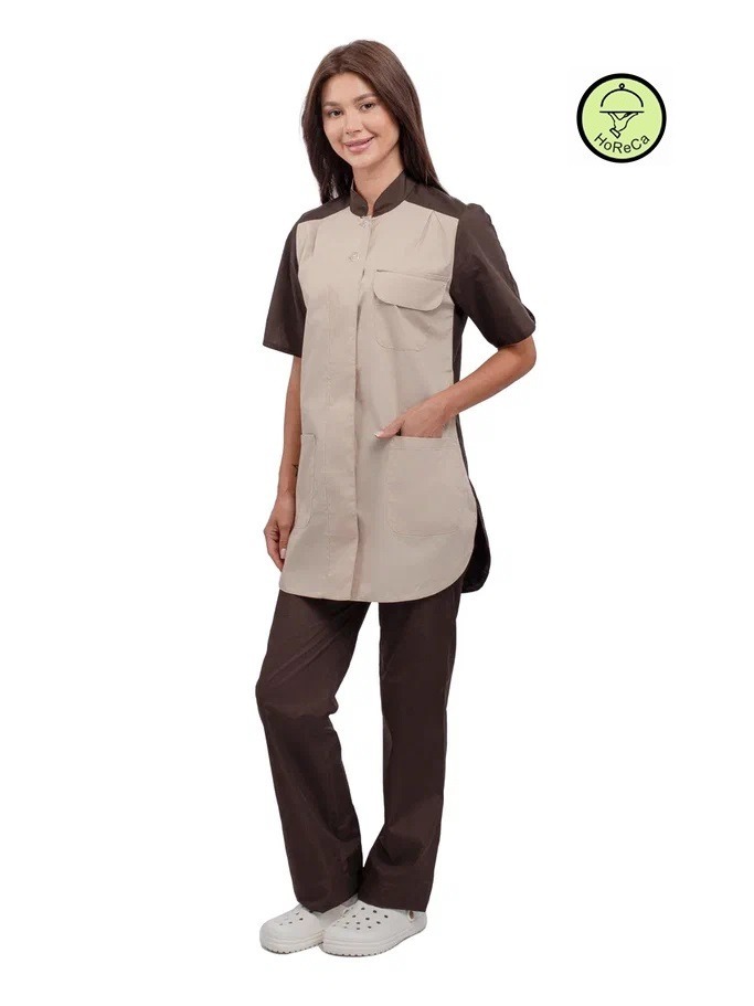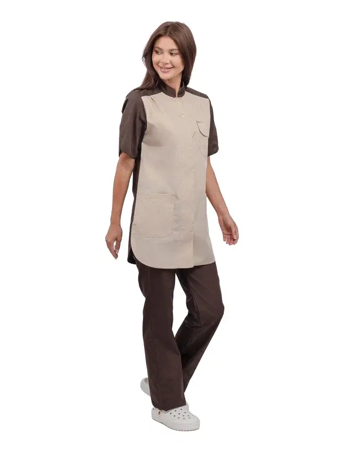 Представляем вашему вниманию женский костюм "Октава" в шоколадно-бежевых тонах — идеальное решение для профессионалов в сфере обслуживания. Этот современный и удобный костюм с свободной посадкой не только обеспечивает комфорт, но и подчеркивает безупречный стиль. Изготовленный из высококачественной смесовой ткани, он надежно защищает от загрязнений и сохраняет свой яркий цвет даже после многократных стирок.