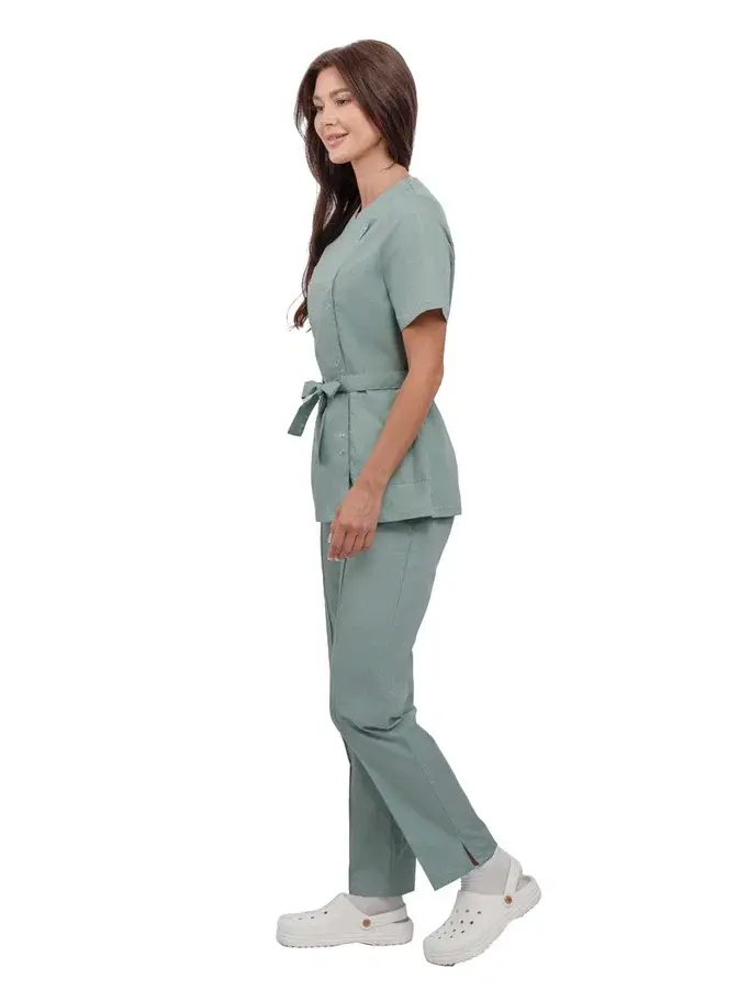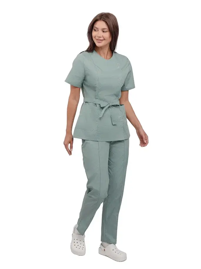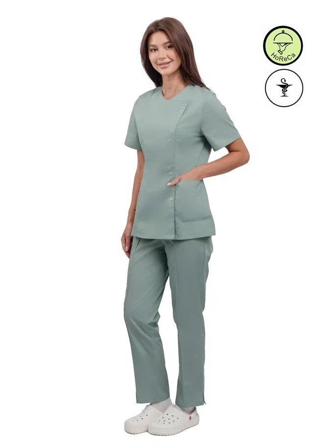 Представляем вашему вниманию женский костюм «Юмелия» в цвете зеленый воск — идеальное решение для профессионалов в сфере косметологии и медицинских учреждений. Этот современный и стильный костюм сочетает в себе легкость, удобство и высокое качество, что делает его незаменимым в повседневной работе. Благодаря свободной посадке и прочной смесовой ткани, он обеспечивает комфорт и презентабельный внешний вид даже при многократных стирках.