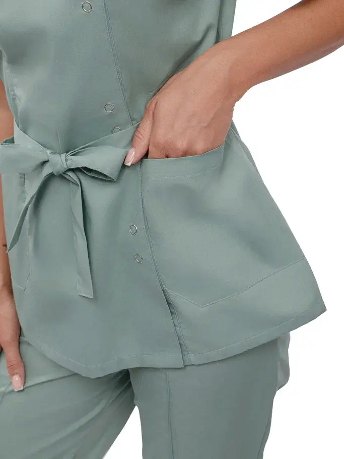 Костюм «Юмелия» идеально подходит для работников косметологических клиник и медицинских учреждений. Его стильный дизайн и функциональные особенности обеспечивают не только комфорт, но и соответствие современным требованиям к профессиональной одежде. Костюм защищает от загрязнений и механических воздействий, что делает его надежным выбором для ежедневного использования.