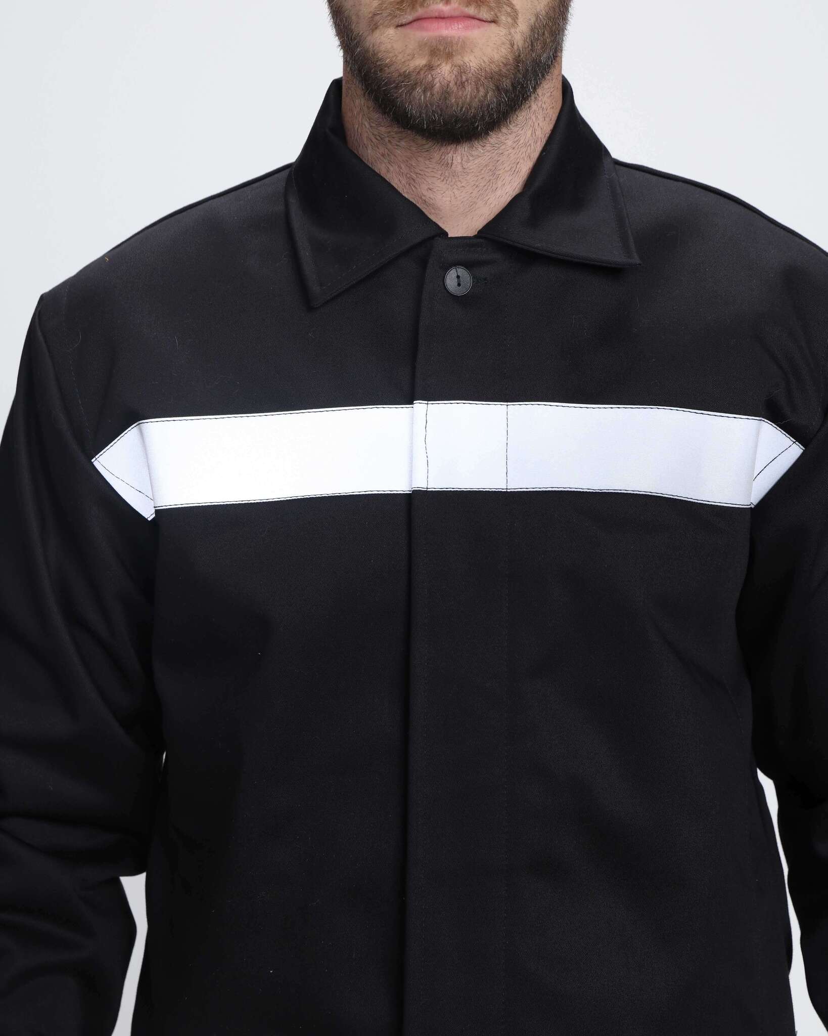 - Куртка: супатная застежка на пуговицы, вентиляционные отверстия по линии притачивания кокетки спины, усиление на локтях и на рабочих поверхностях полочек.