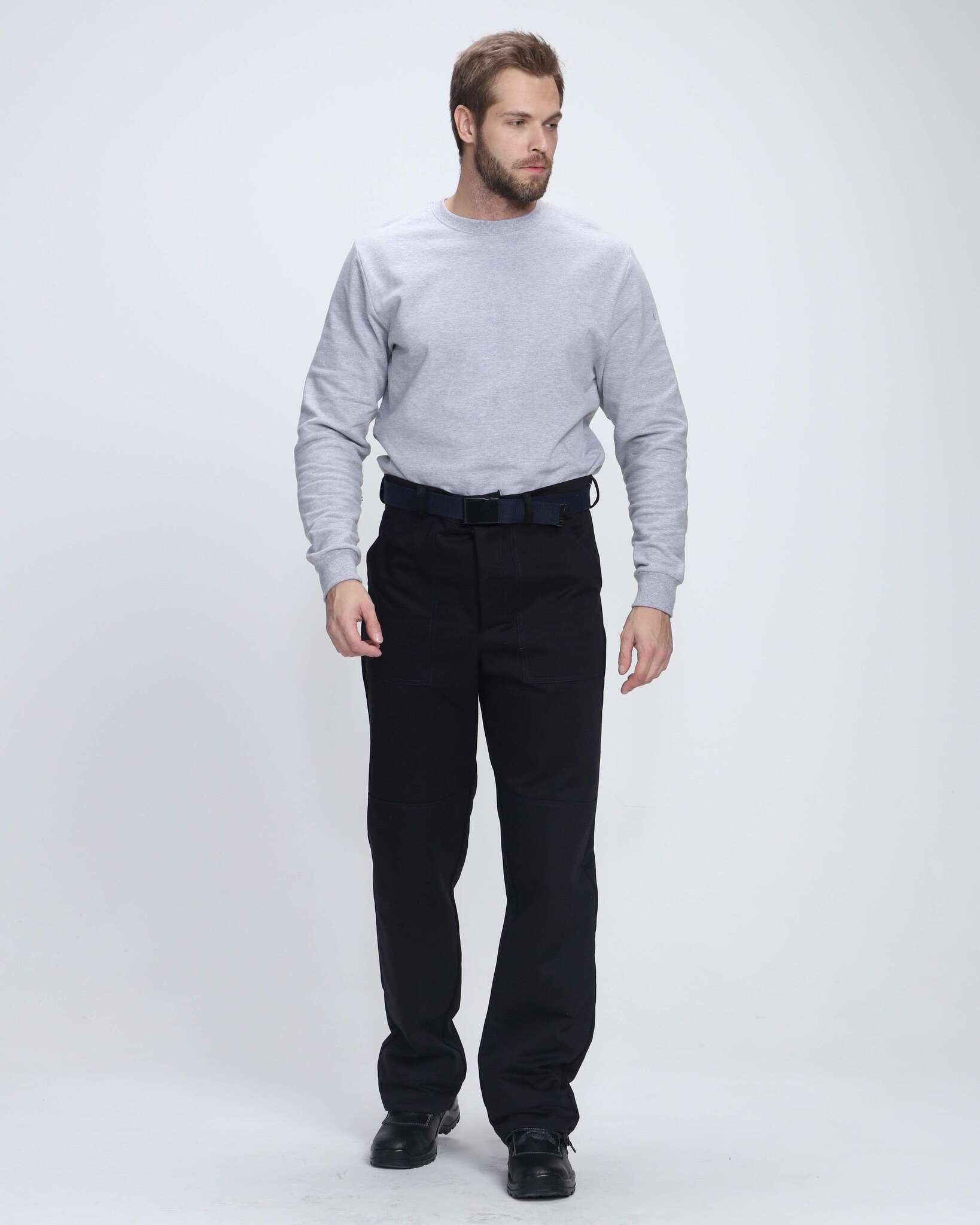 - Брюки: свободного прямого покроя с супатной застежкой на пуговицах и усилением по рабочей поверхности.