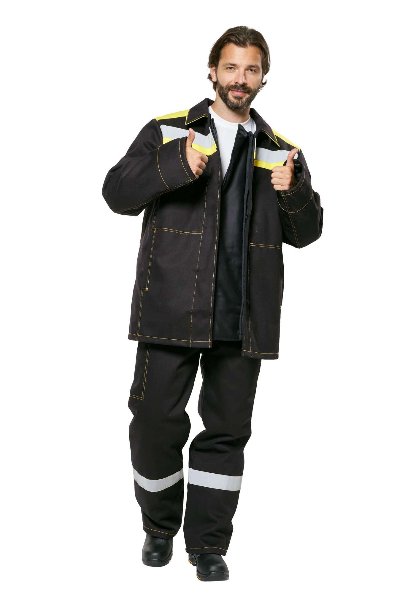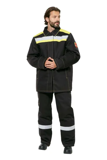 - Элементы защиты: огнестойкие светоотражающие полосы шириной 50 мм, усилительные накладки на уязвимых участках.