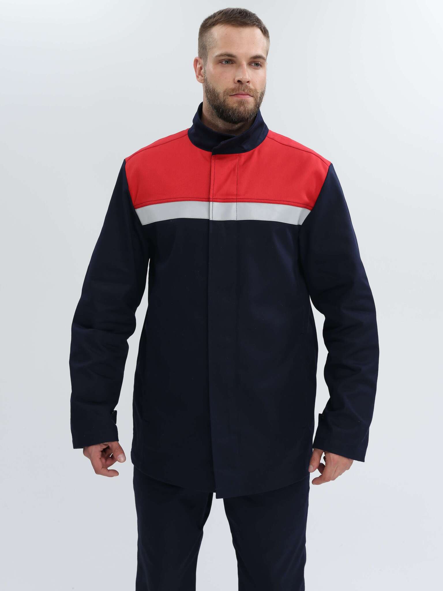 - Куртка: Центральная застежка с 5 пуговицами, вентиляционные отверстия для улучшенной циркуляции воздуха, а также СОП шириной 50 мм для дополнительной защиты.