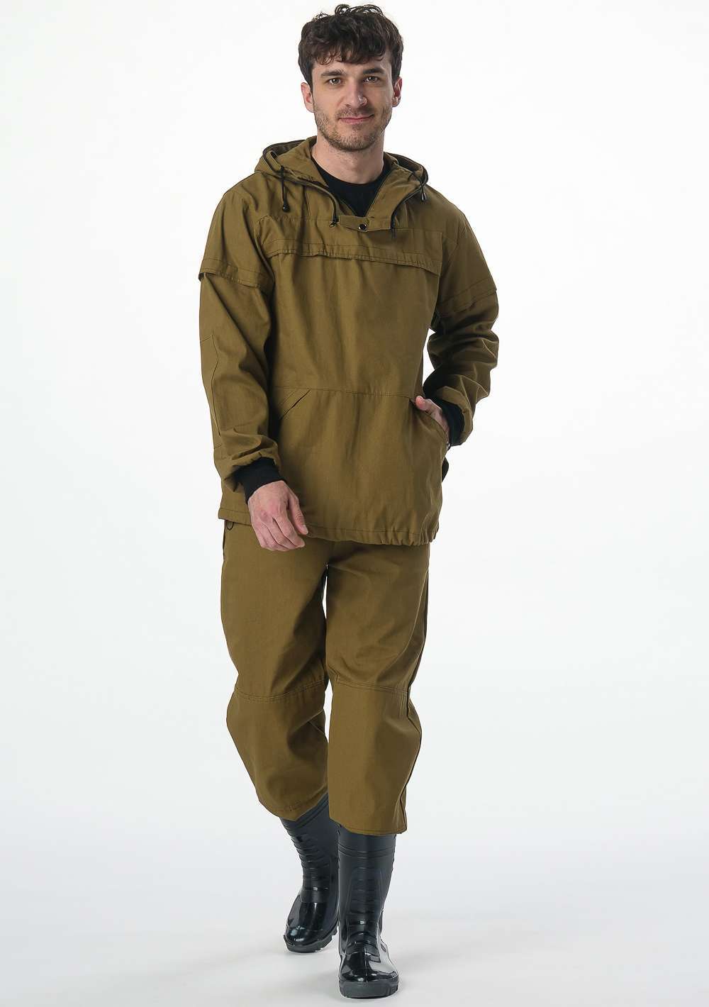 - Куртка: прямого силуэта с регулируемым капюшоном и съемной вставкой из противомоскитной сетки на молнии.