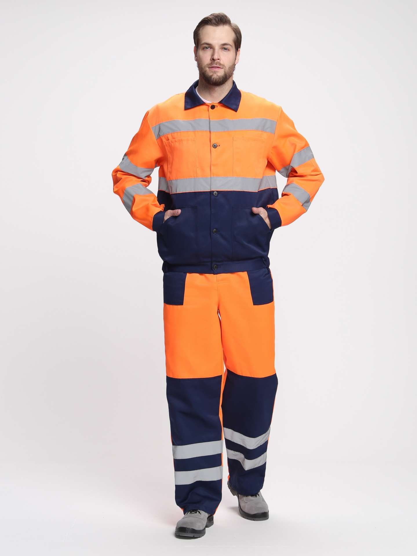 Костюм Легион-Трасса — это идеальное решение для предприятий, требующих надежной и безопасной рабочей одежды. Изготовленный из смесовой ткани с высокой плотностью, данный комплект обеспечивает не только комфорт, но и защиту в условиях низкой видимости. Яркие оранжевые и темно-синие цвета в сочетании с светоотражающими элементами гарантируют заметность работника даже в темное время суток.