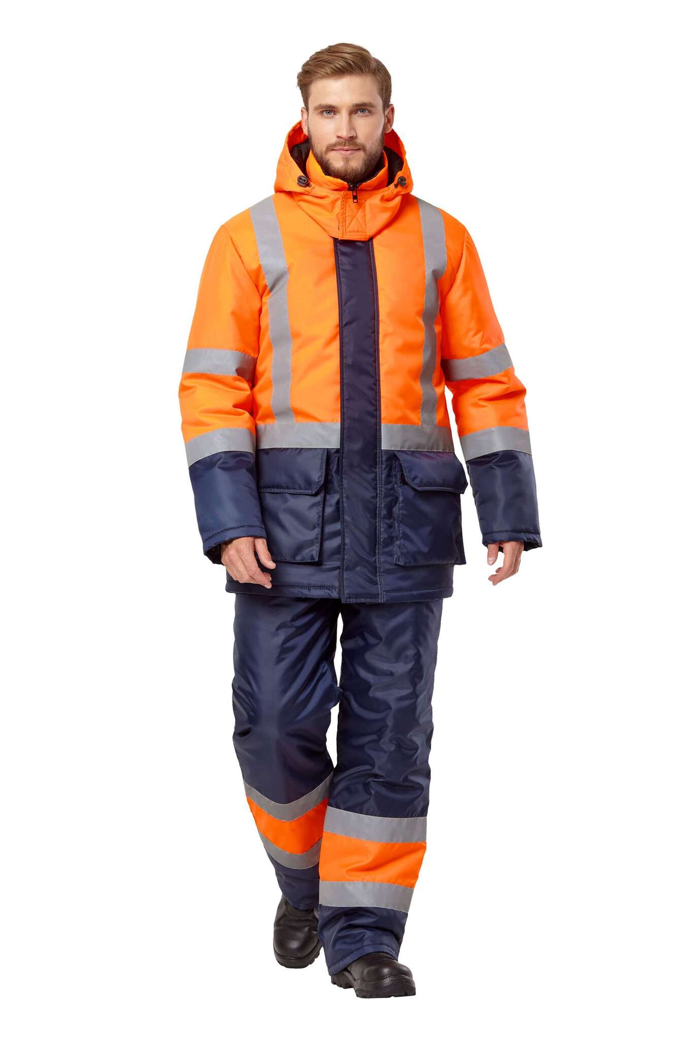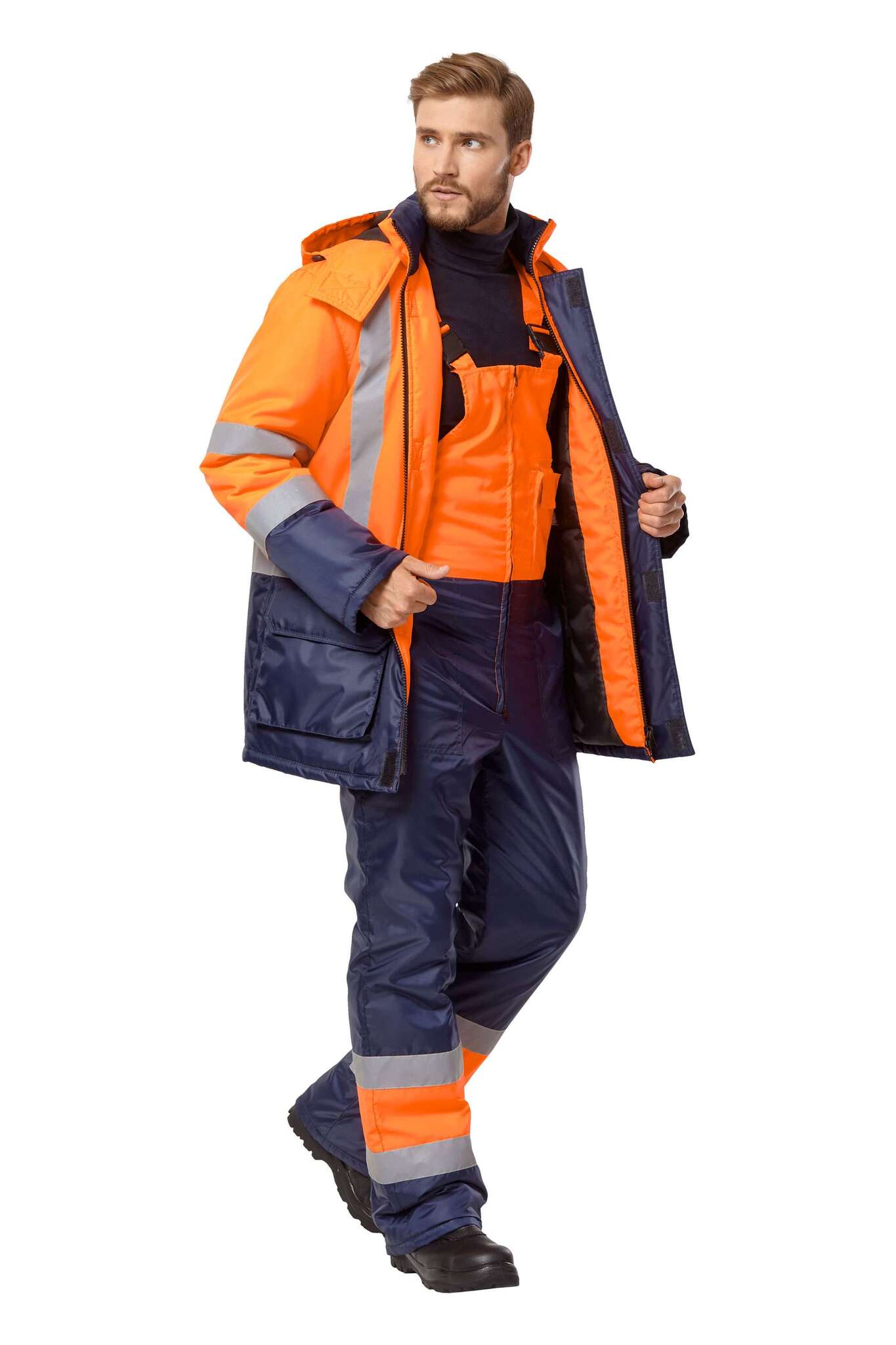 Костюм 'Трасса' — это идеальное решение для обеспечения безопасности и комфорта работников в холодные зимние месяцы. Изготовленный из высококачественных материалов, данный комплект включает куртку и полукомбинезон, которые обеспечивают надежную защиту от низких температур и повышенную видимость в любых условиях освещения. Благодаря своему яркому оранжевому и синему цветам, этот костюм гарантирует, что сотрудники будут заметны как днем, так и ночью.