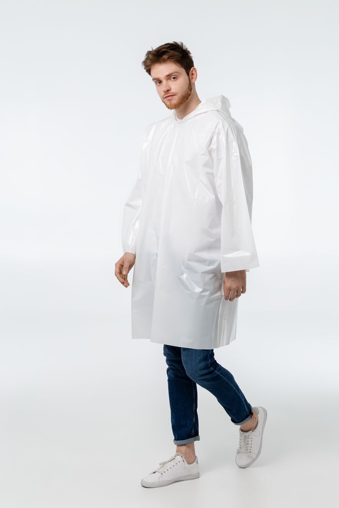 - Цвет: Белый, что позволяет легко интегрировать дождевик в корпоративный стиль или использовать для рекламных целей.