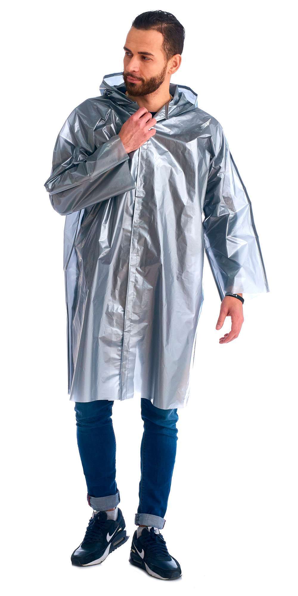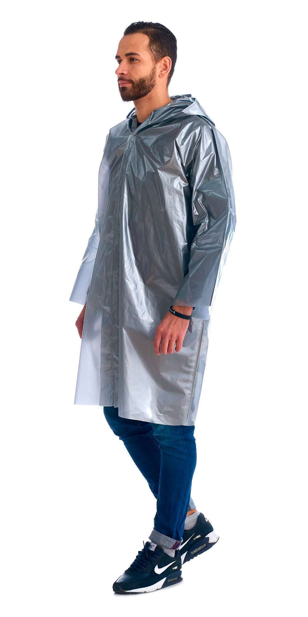 - Тип застежки: Липучка, позволяющая легко и быстро надевать и снимать дождевик.