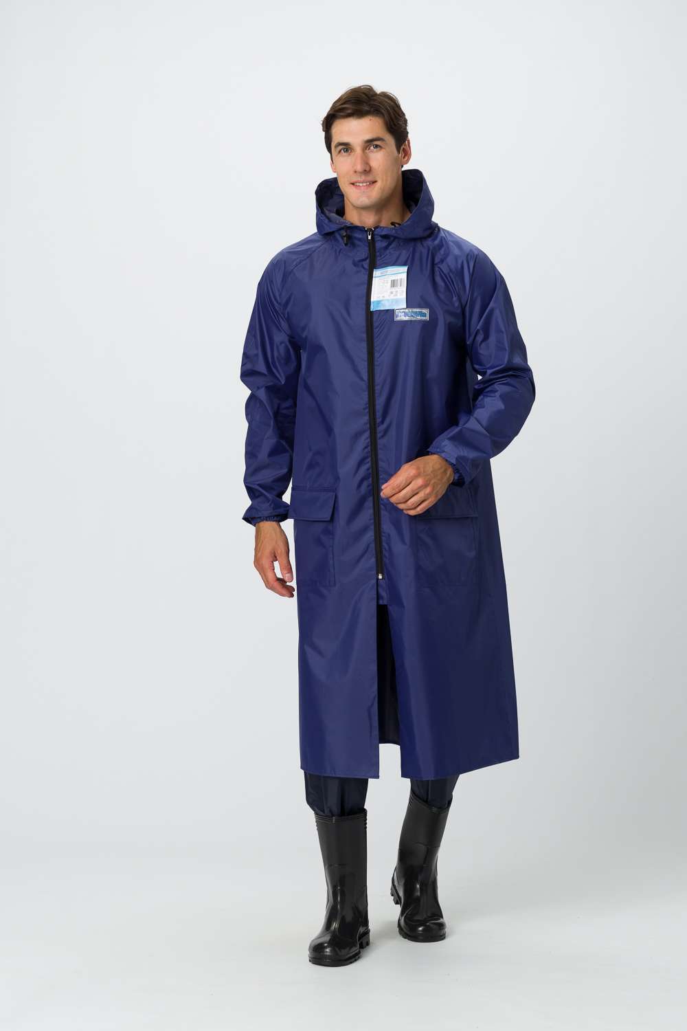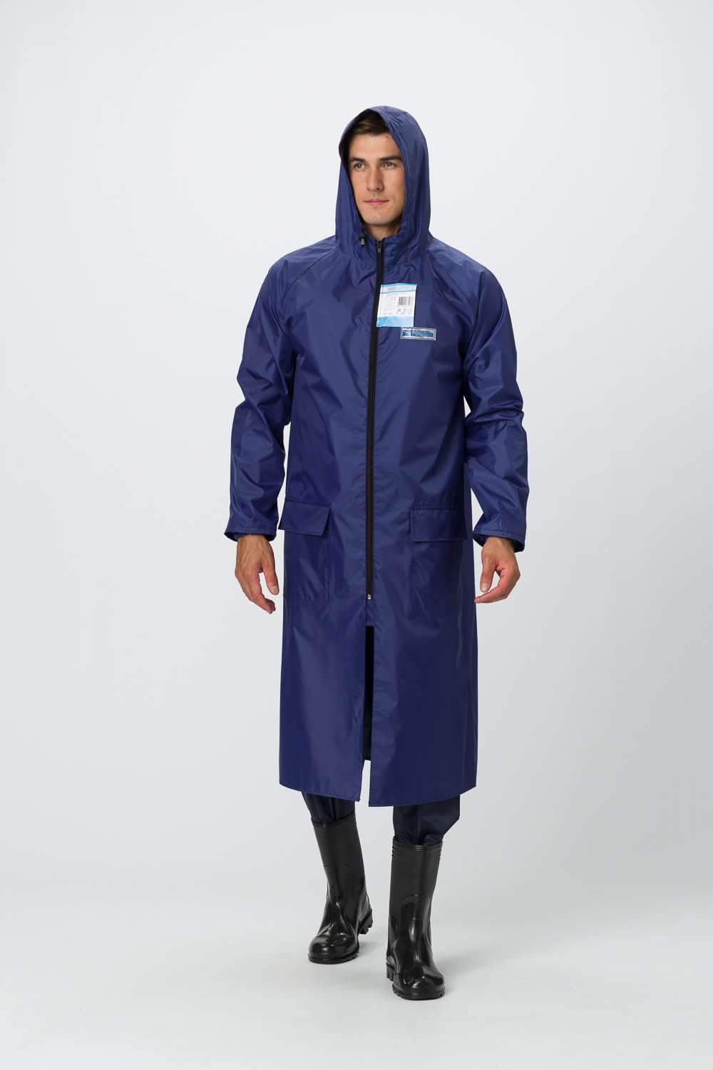 - Конструкция: плащ с застежкой на молнии, клапаном против ветра, капюшоном и двумя карманами с клапанами.