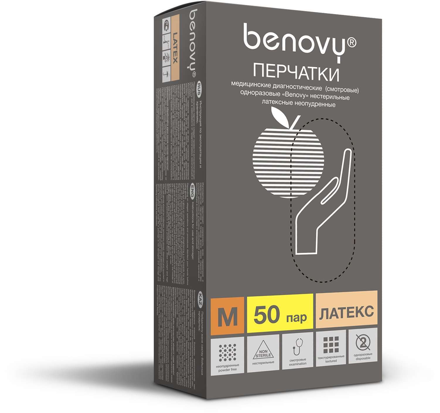 Перчатки BENOVY™ латексные неопудренные 5,4гр. (50 пар)