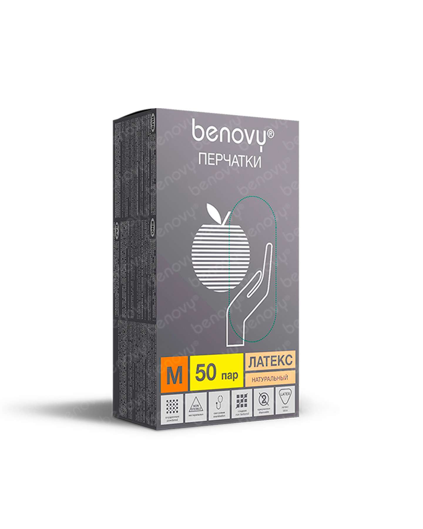 Перчатки одноразовые Benovy латексные опудреные телесные гладкие (50 пар)