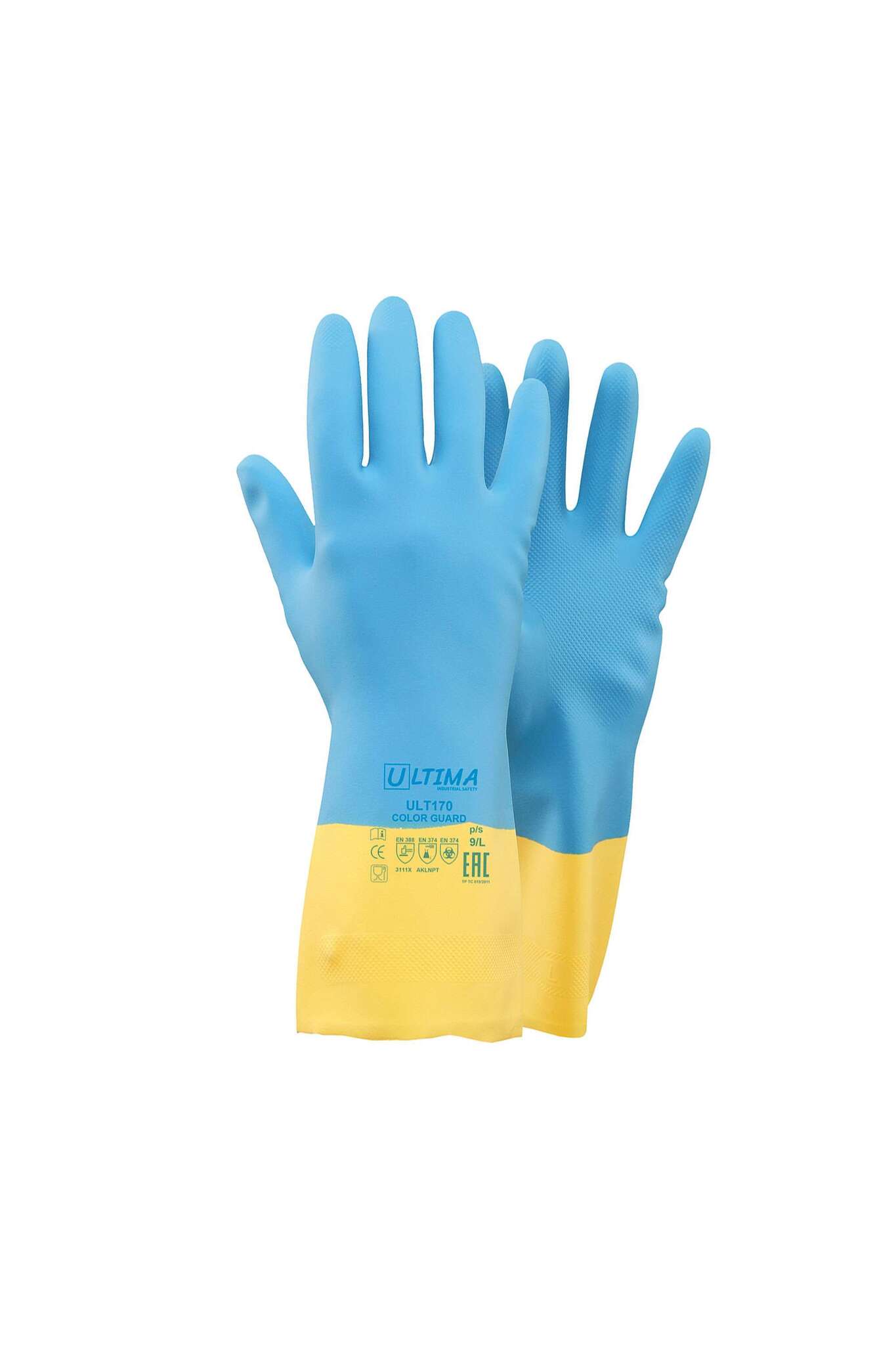 Перчатки ULT170 'Color Guard' – это идеальное решение для предприятий, требующих надежной защиты рук при работе с химическими веществами. Сочетание латекса и неопрена толщиной 0,70 мм обеспечивает высокую стойкость к воздействию концентрированных кислот, щелочей и растворителей. Эти перчатки не только защищают, но и обеспечивают комфорт, благодаря внутреннему хлопковому напылению с антибактериальной обработкой.