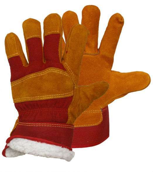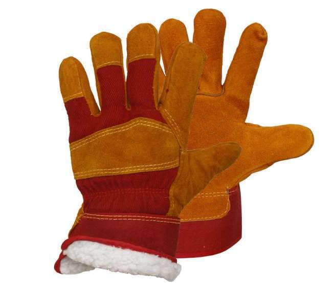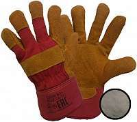 Перчатки спилковые комбинированные утепленные (искусственный мех) желтые с красным