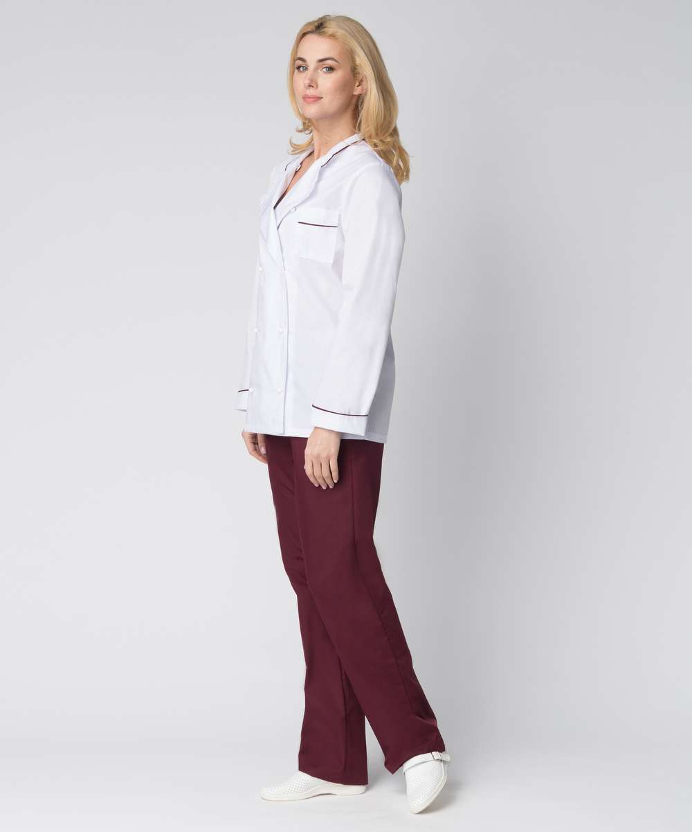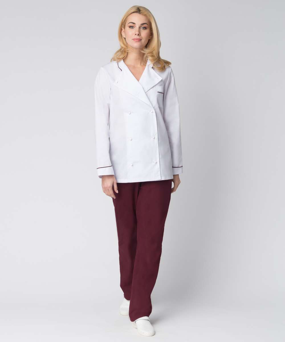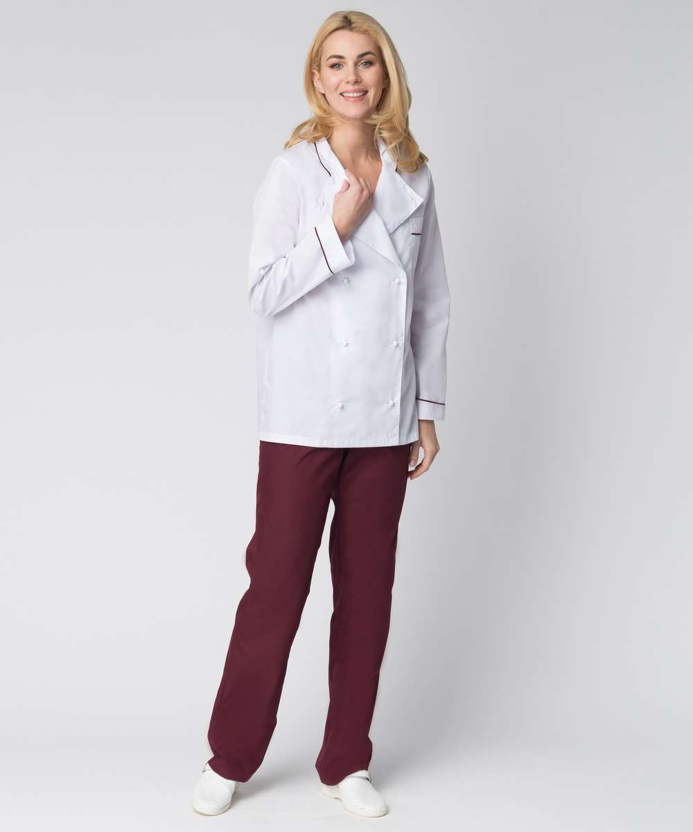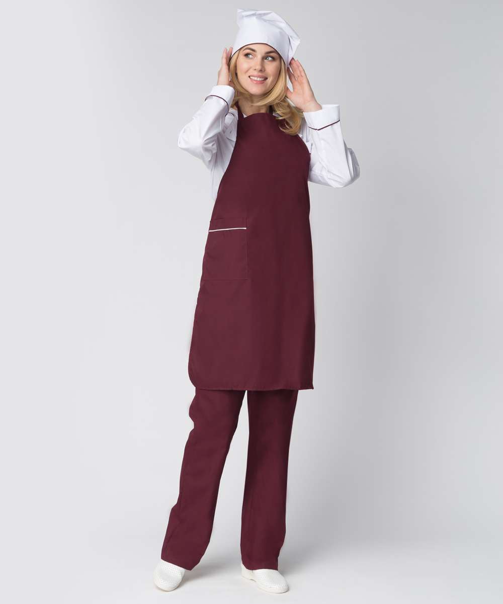 - Комплектность: включает китель, брюки, фартук и колпак.