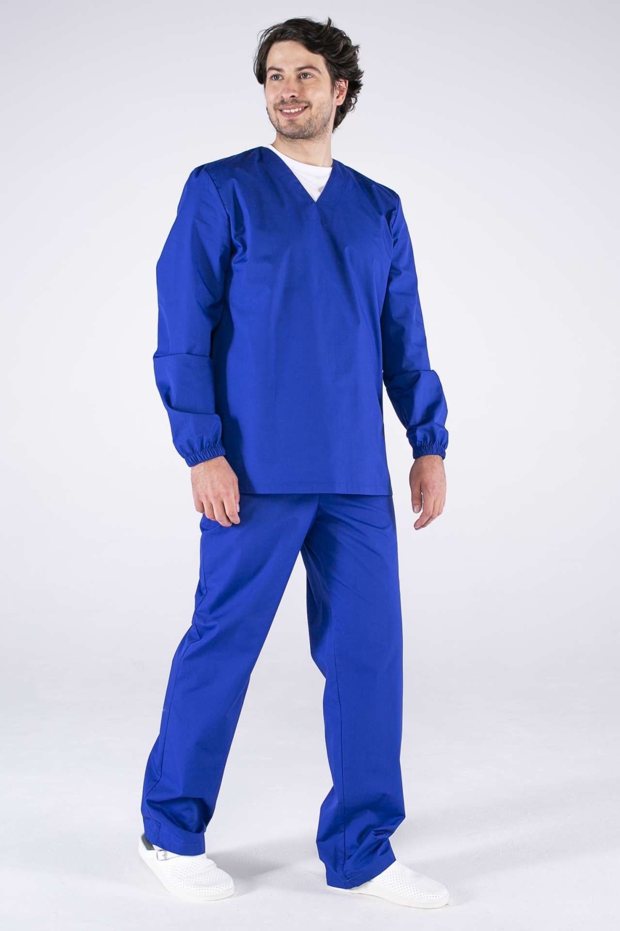 - Блуза: V-образный вырез горловины и низ рукава с эластичной лентой для удобства. Отсутствие карманов минимизирует риск накопления загрязнений.