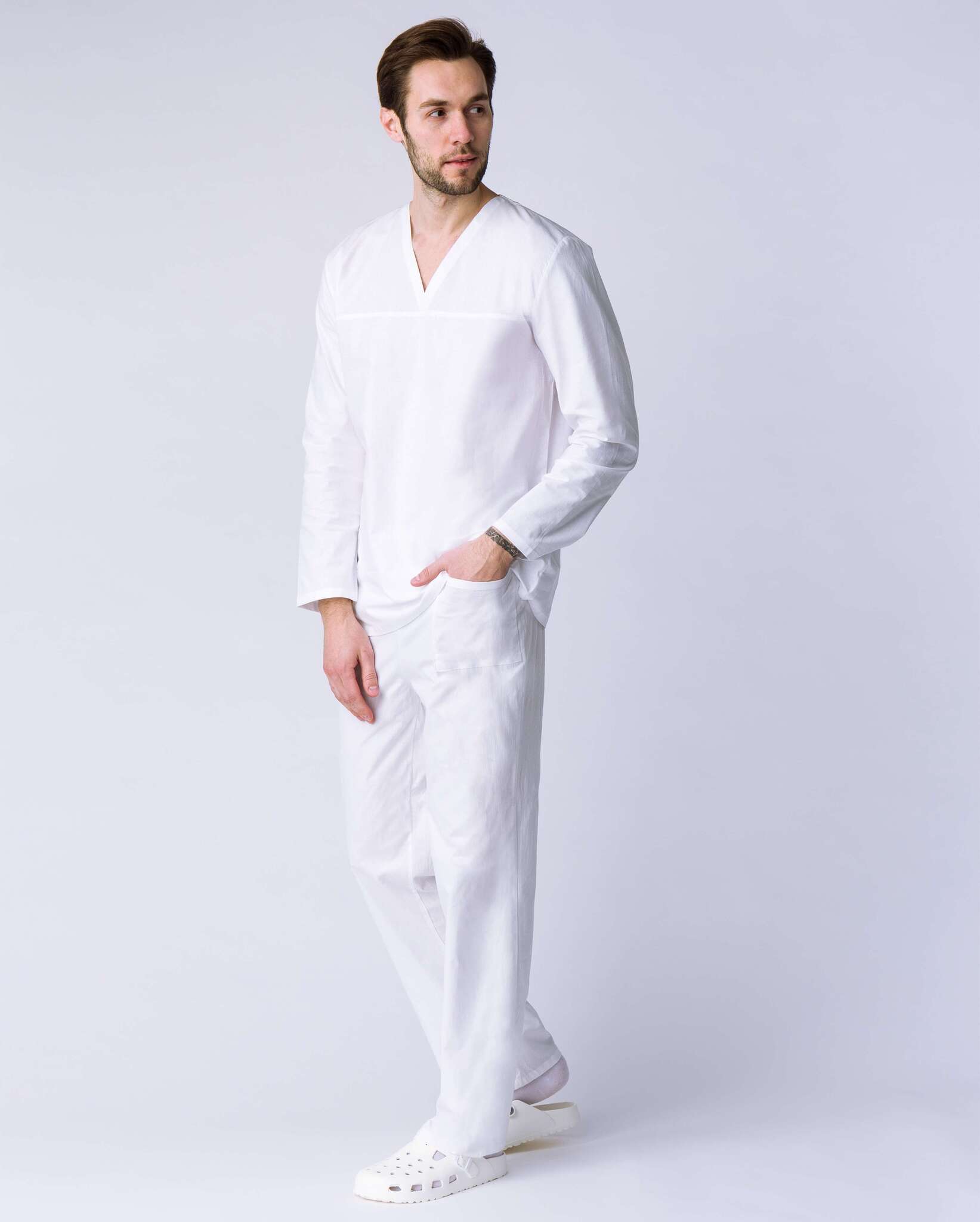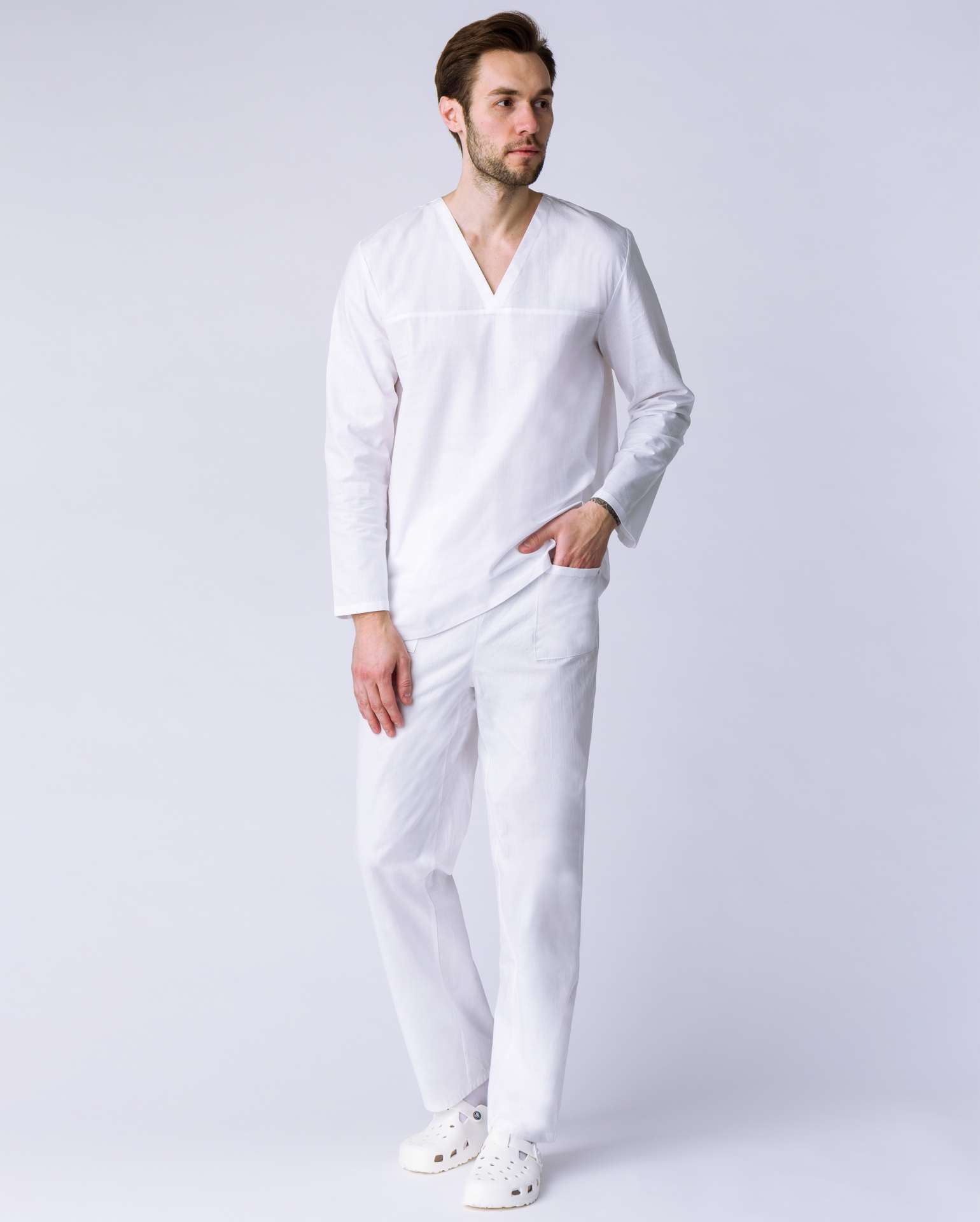 Костюм пекаря с длинным рукавом (тк.Бязь, 145), белый