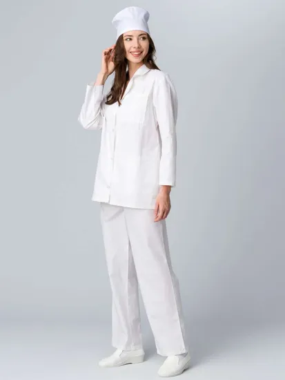 - Брюки: прямого силуэта на притачном поясе с резинкой, что обеспечивает дополнительный комфорт в работе.