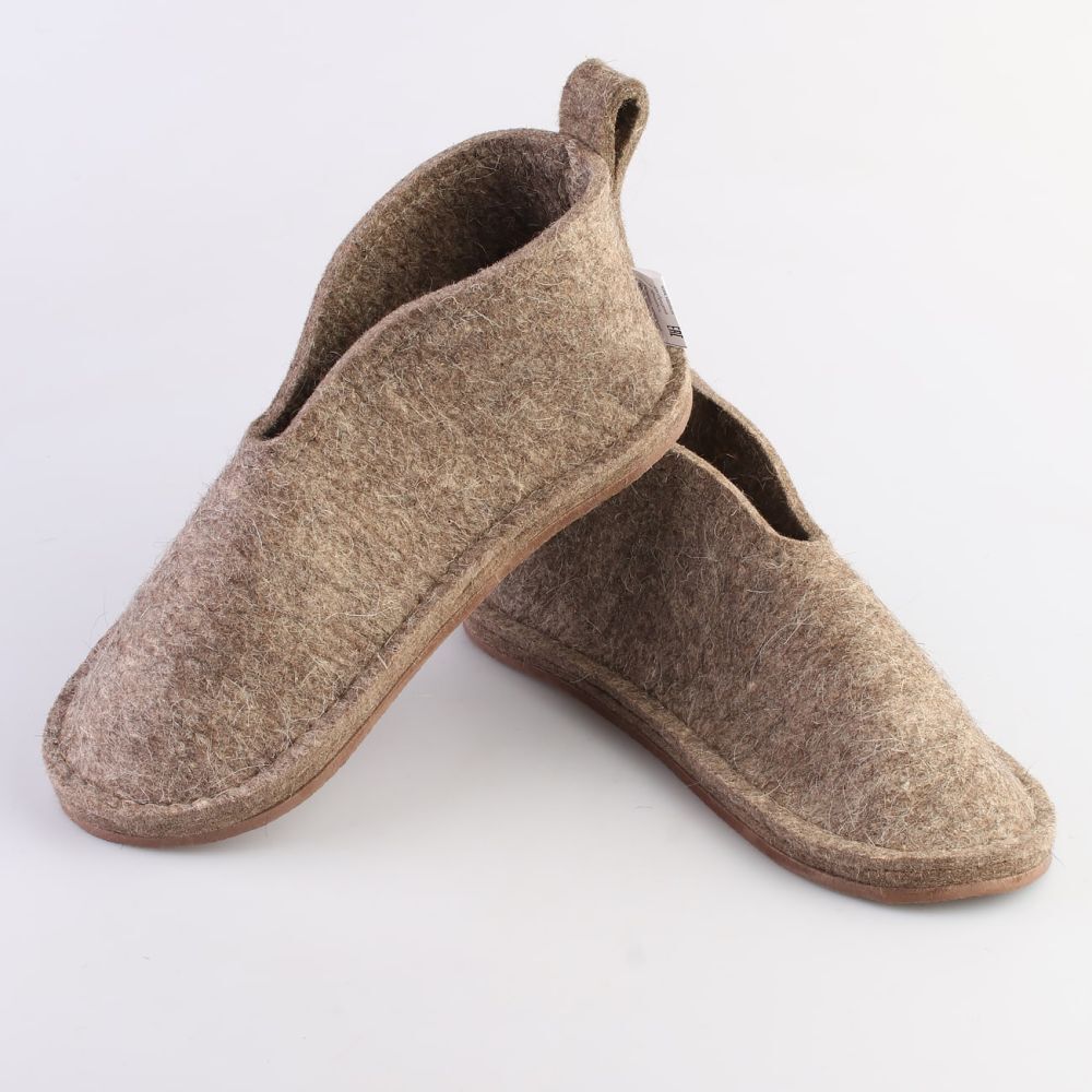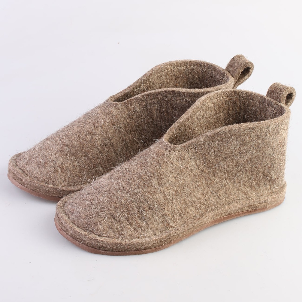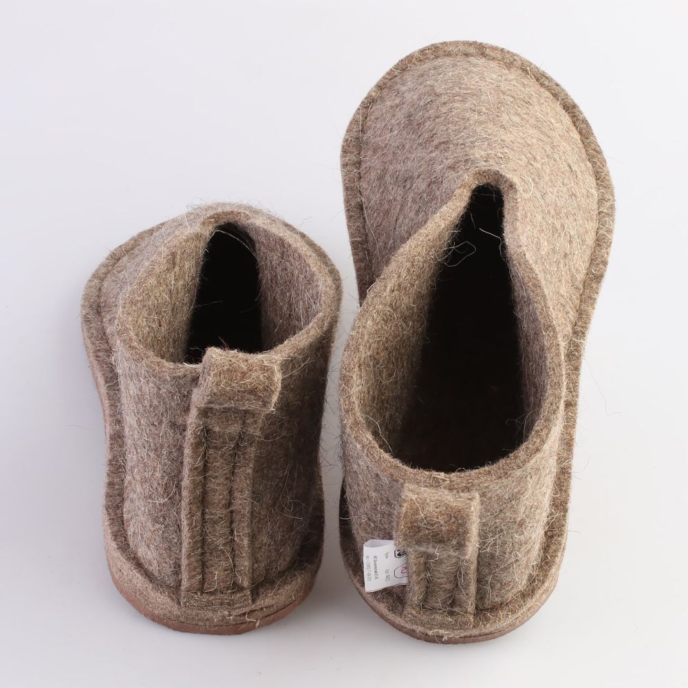 - Материал верха: 100% грубошерстный войлок толщиной 6-7 мм, который принимает форму стопы после нескольких дней носки.