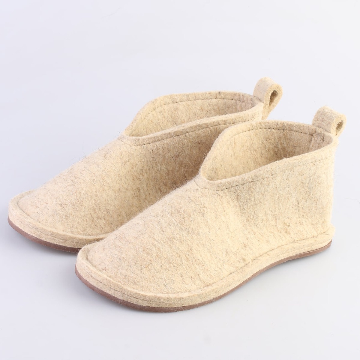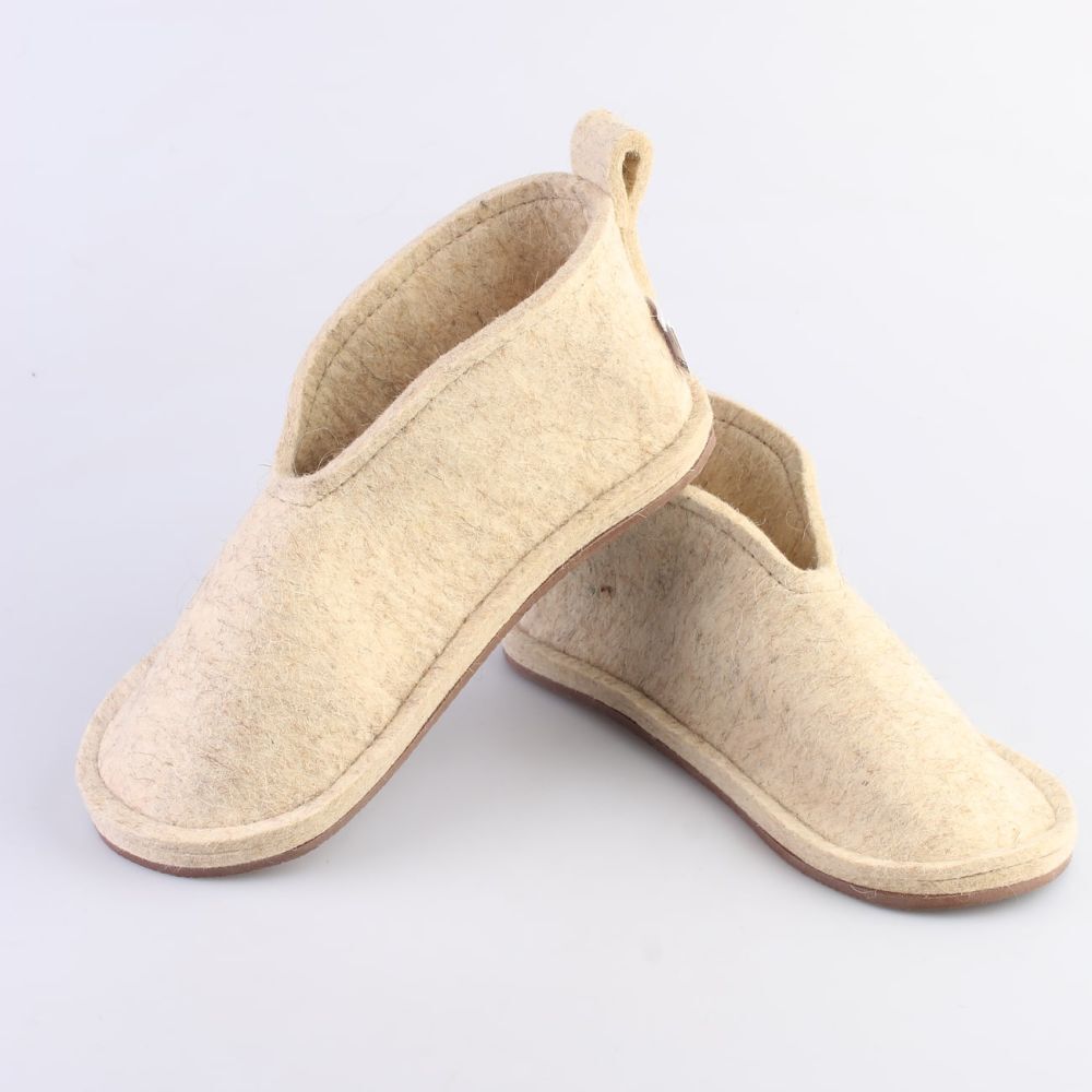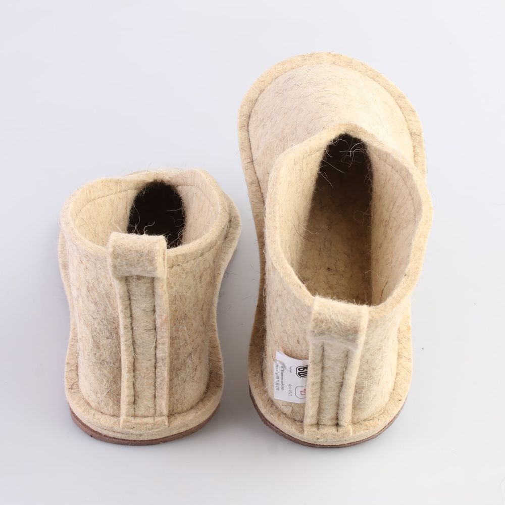 - Материал верха: 100% полугрубошерстный войлок толщиной 6-7 мм, который принимает форму стопы после нескольких дней носки.