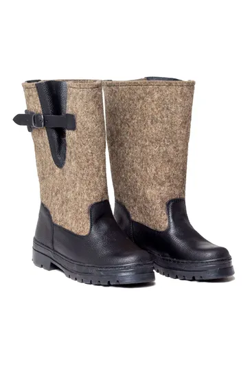 - Материалы: Верх выполнен из натуральной кожи (юфть) и 100% войлока, что обеспечивает отличную теплоизоляцию.
