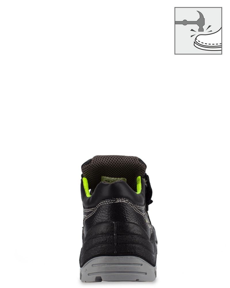 - Подносок: композитный, выдерживающий ударную нагрузку до 200 Дж, защищающий пальцы ног от повреждений.