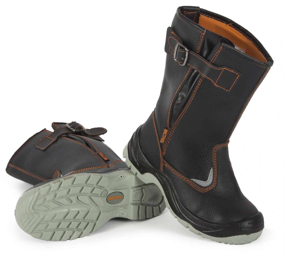 Сапоги выполнены из натуральной кожи, что гарантирует долговечность и прочность. Искусственная кожа на голенище защищает от воздействия ОПЗ, МВ и МВО. Утеплитель типа "типика" обеспечивает комфорт в холодное время года. Металлический подносок с прочностью 200 Дж защищает ноги от механических повреждений. Двуслойная подошва из полиуретана ПУ-ПУ обеспечивает отличную амортизацию и сцепление с поверхностью. Вес одного сапога составляет всего 1,22 кг, что делает их легкими и удобными для длительного ношения.