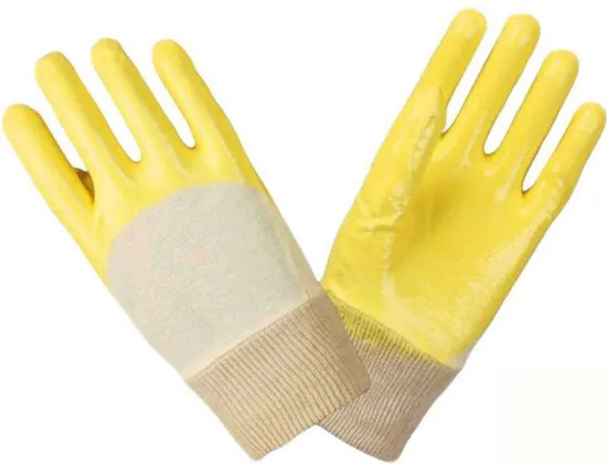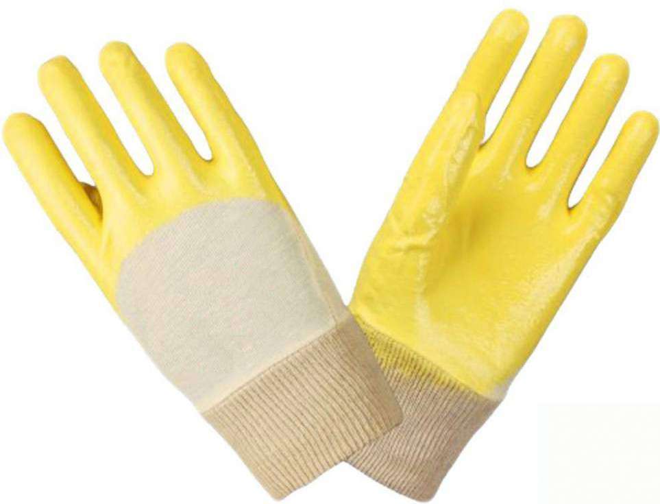 Перчатки нитриловые частичный облив облегченные манжет резинка, желтые