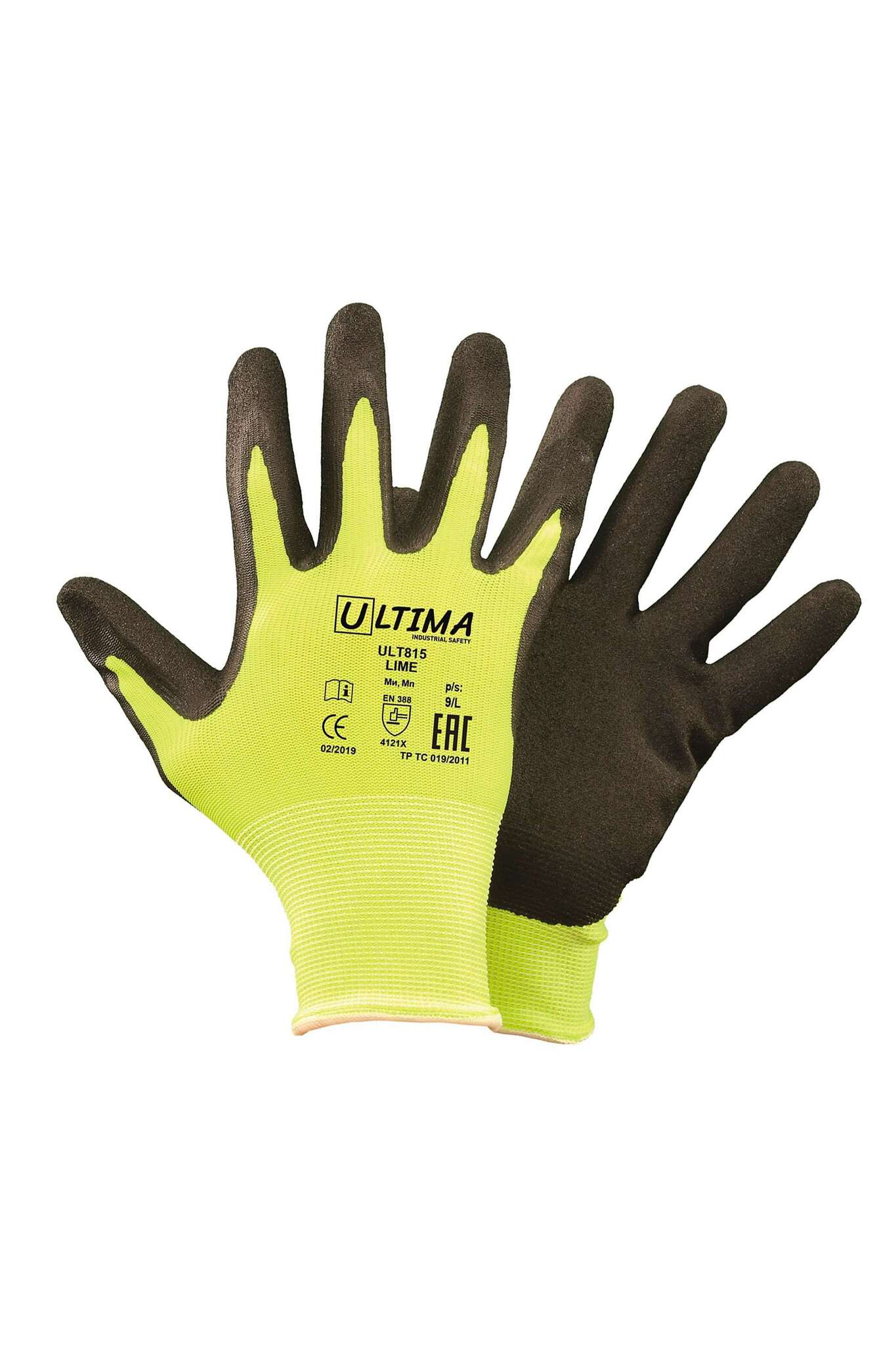 Перчатки рабочие нейлоновые Ultima ULT815 'Lime' с зернистым нитриловым покрытием