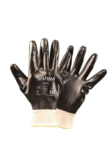 Перчатки рабочие нейлоновые Ultima ULT830 с полным нитриловым покрытием