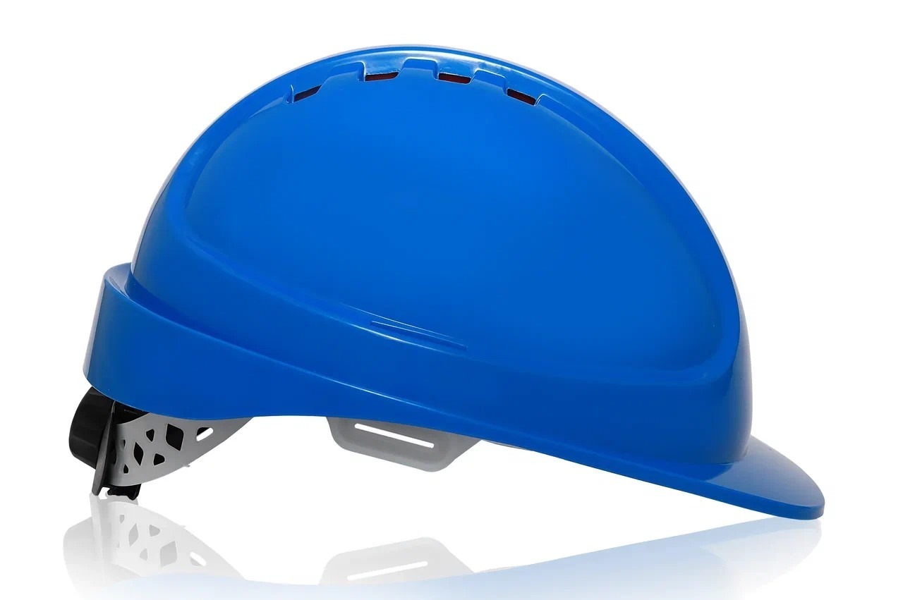 Каска защитная ЕЛАНПЛАСТ ФОРВАРД синяя (ленточное оголовье, храповый механизм)