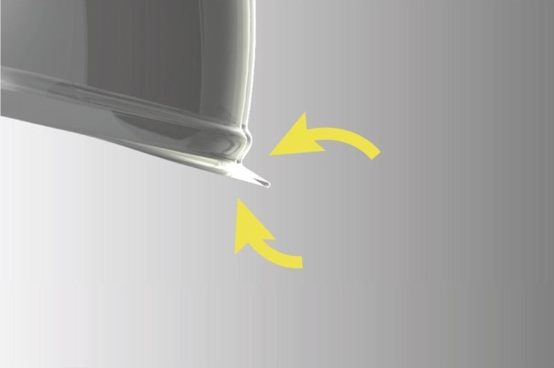 - Щиток: литой прозрачный поликарбонат, оптический класс 1, размер 370 x 190 мм.