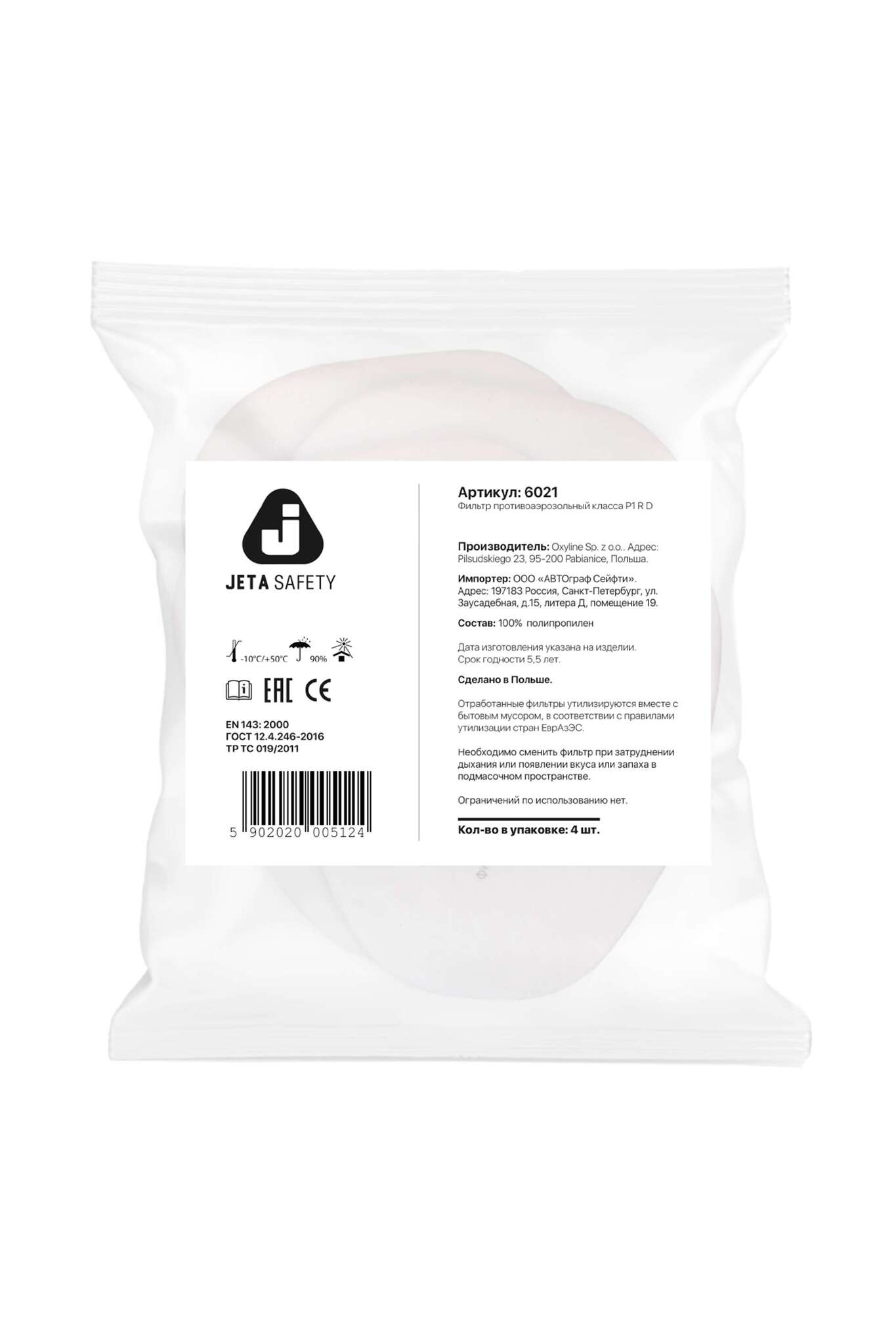 Выбирая фильтр 'Jeta Safety' 6021, вы инвестируете в безопасность и эффективность работы вашего предприятия. Не упустите возможность обеспечить своим сотрудникам надежную защиту!