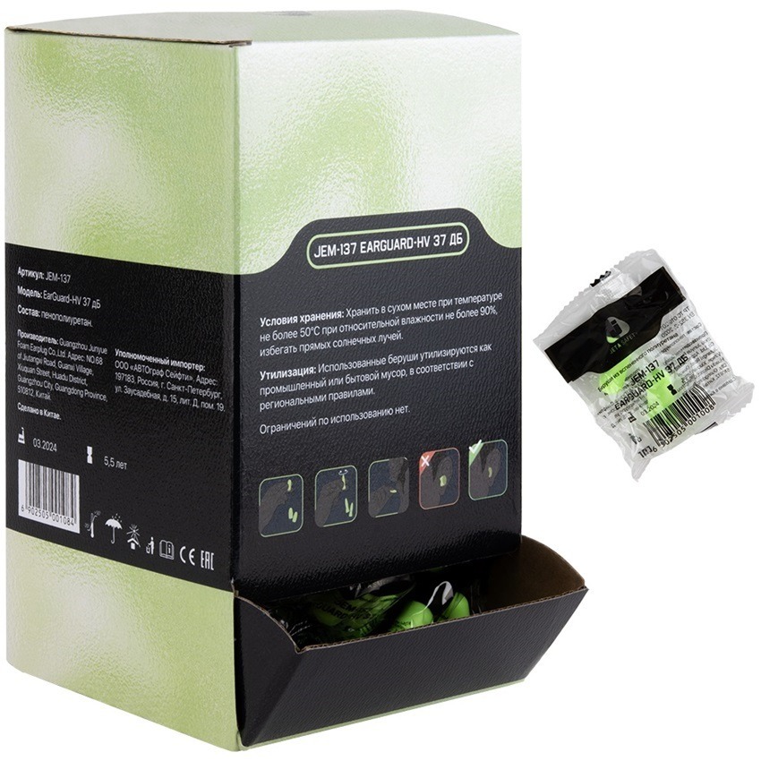 Беруши противошумные JEM-137 SNR 37дБ EarGuard-HV – это идеальное решение для защиты слуха в условиях повышенного шума. Изготовленные из гипоаллергенного вспененного полиуретана, они обеспечивают высокую акустическую эффективность, снижая уровень шума на 37 дБ. Эти беруши подходят для длительного ношения, обеспечивая комфорт даже при продолжительном использовании.