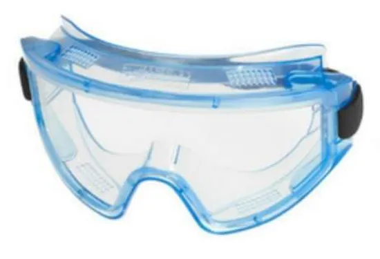 - Защитные свойства: Защита глаз спереди, с боков, сверху и снизу от твердых частиц, брызг жидкостей, пыли и ультрафиолетового излучения.
