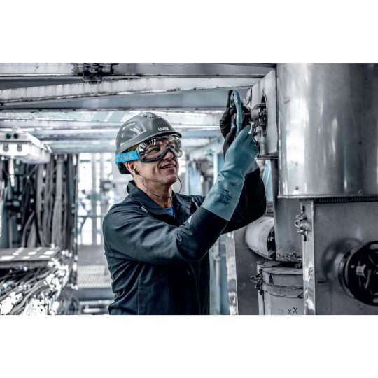 - Покрытие uvex supravision excellence защищает от запотевания, химикатов и царапин.