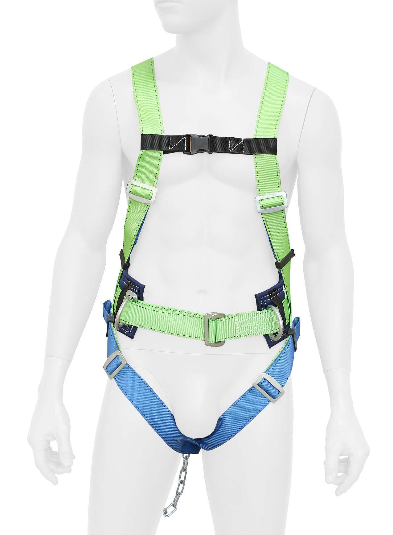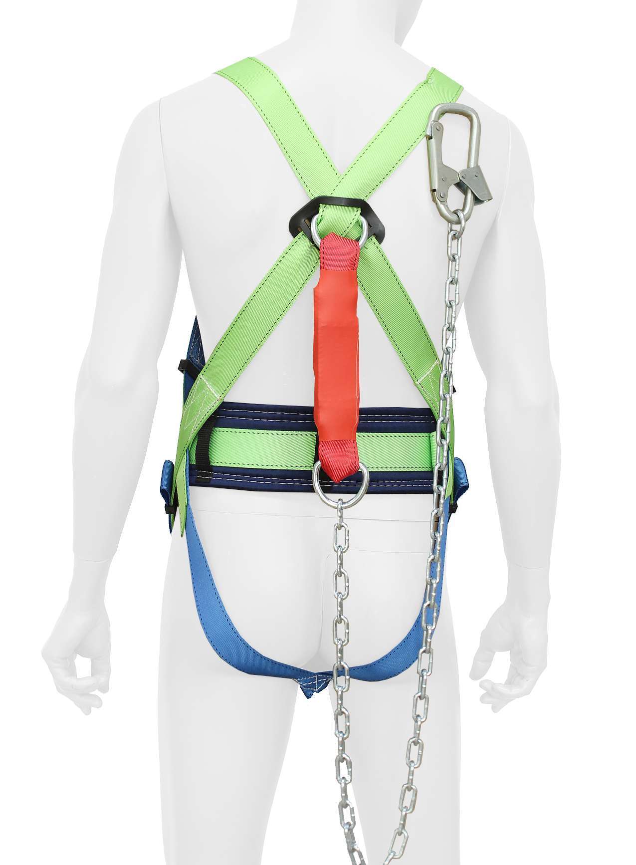 - Структура: Система включает наплечные и набедренные лямки, кушак и страховочный строп из металлической цепи с амортизатором.