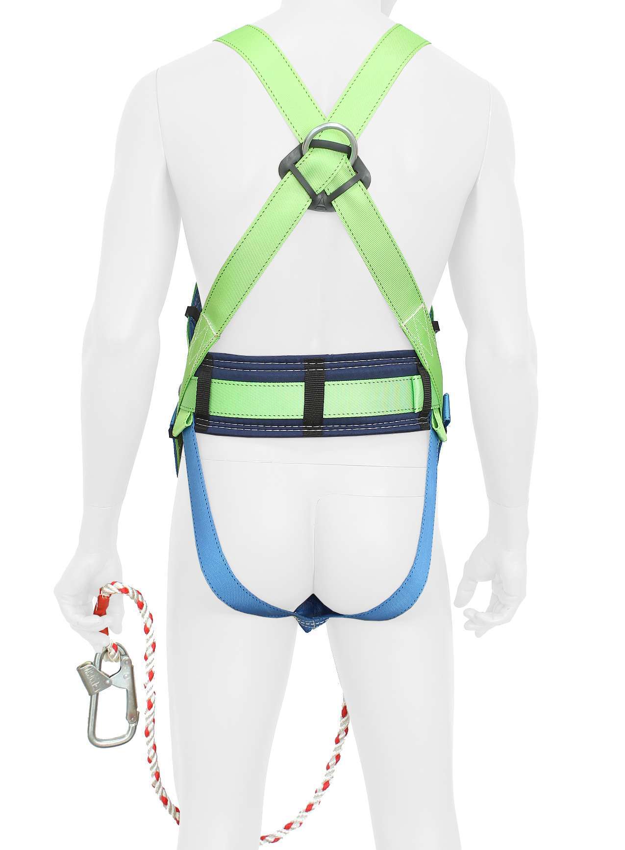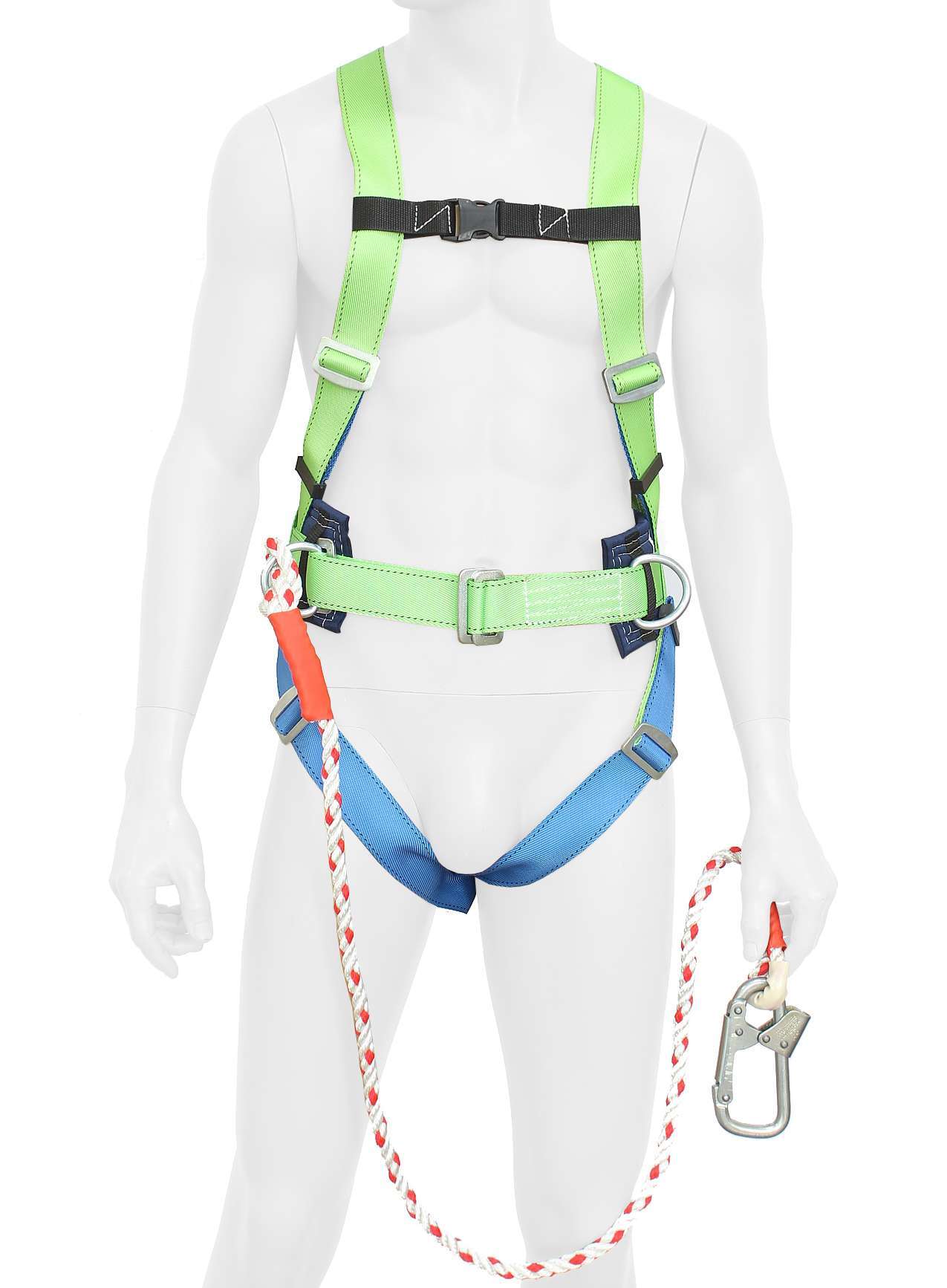 - Предохранительный пояс: оснащен наплечными лямками и стропом из каната в оплетке, что обеспечивает надежное удержание и позиционирование.