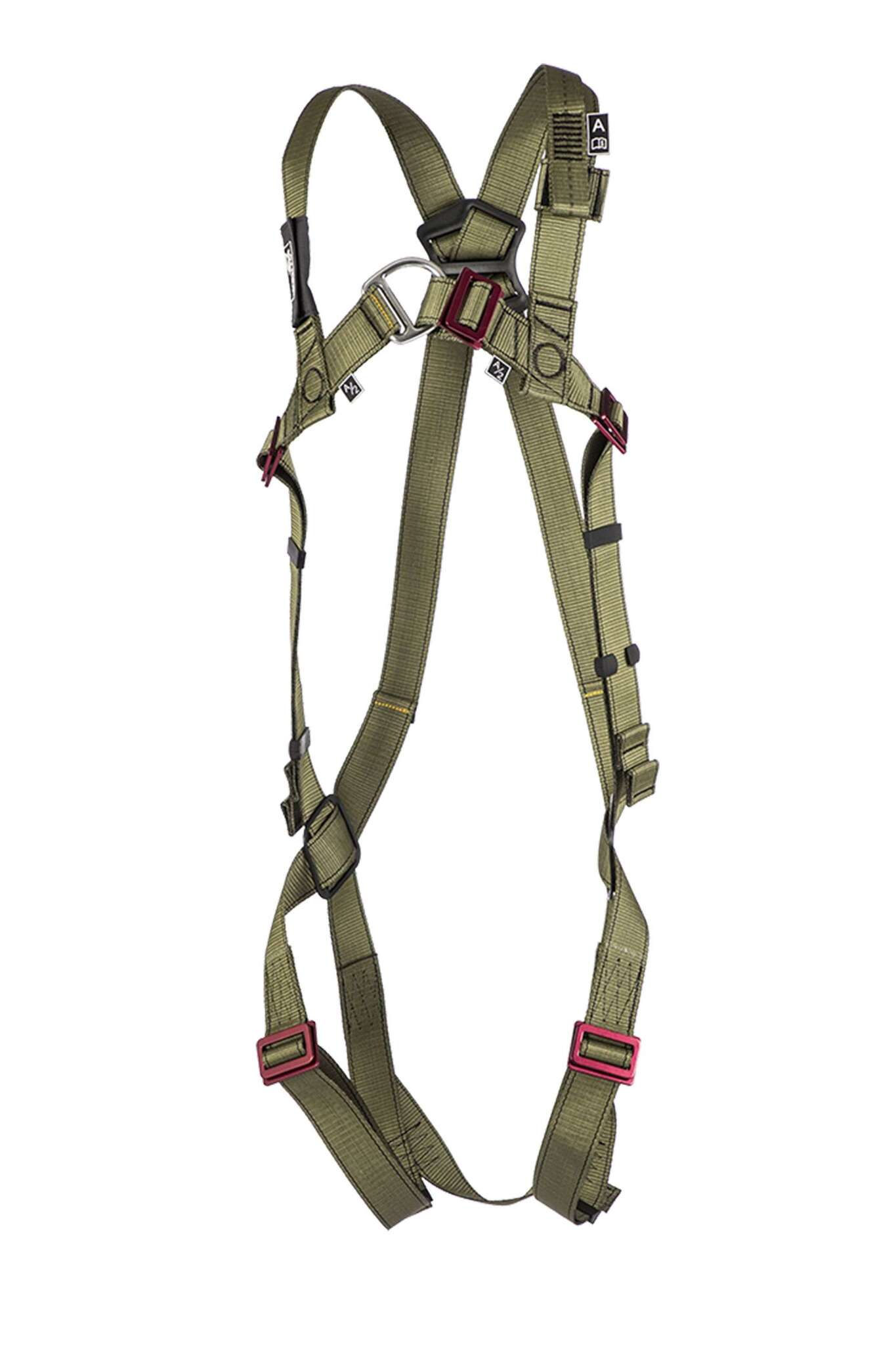 Конструкция привязи включает грудную точку, которая обеспечивает правильное положение пользователя после остановки падения, а также страховочную точку на спине с удлинителем, что позволяет удобно надевать привязь под защитную экипировку. Использование антистатичной ленты и искробезопасных пряжек из алюминия делает эту привязь идеальным выбором для работы в условиях повышенной опасности.