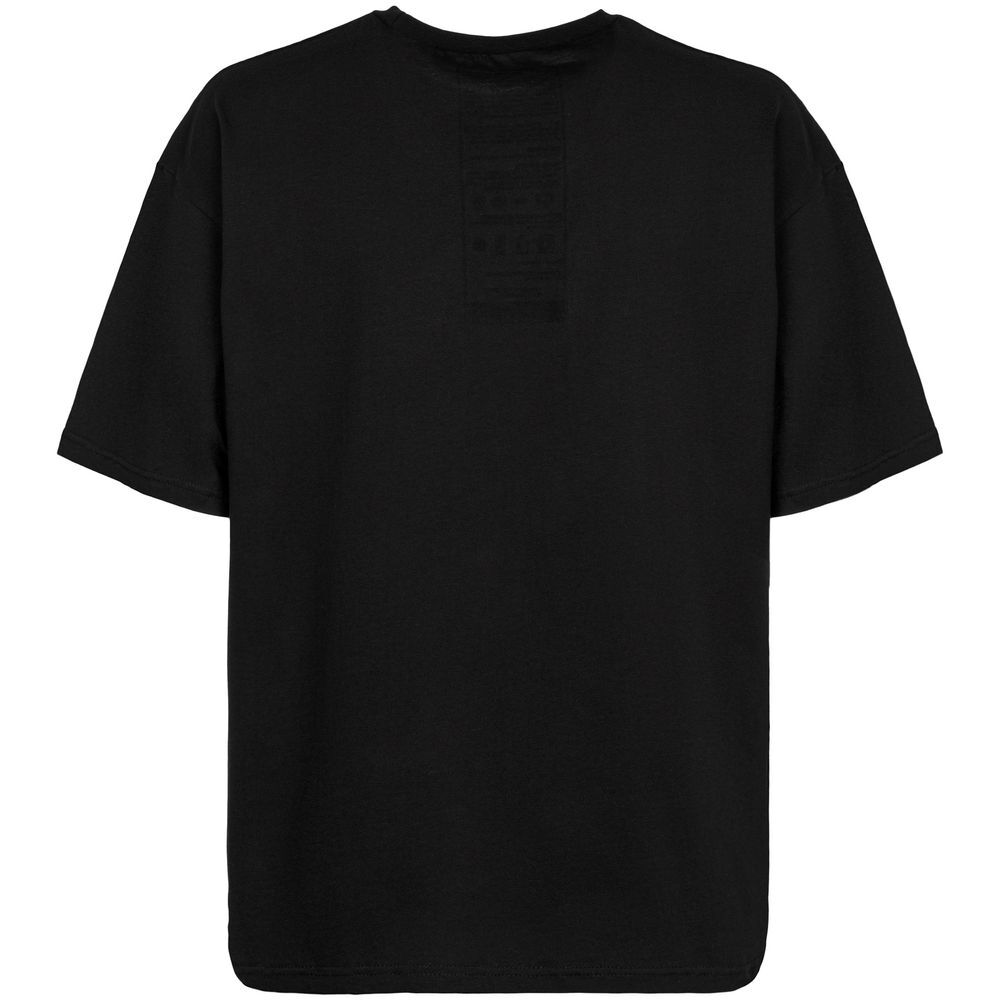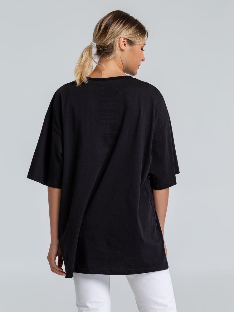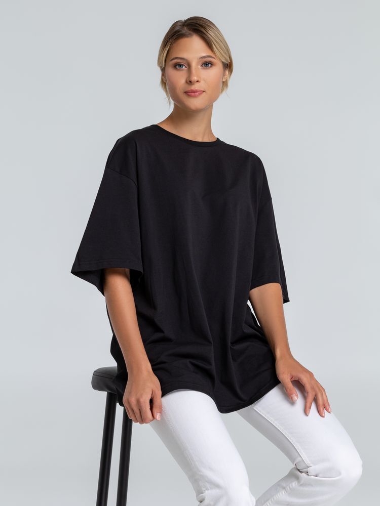 - Крой: свободная посадка оверсайз с спущенным плечом и круглым вырезом, что делает футболку универсальной для любого типа фигуры.