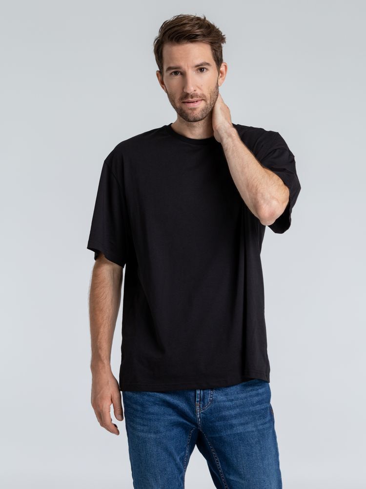 - Дизайн: стильный черный цвет и отделка резинкой придают футболке современный вид.