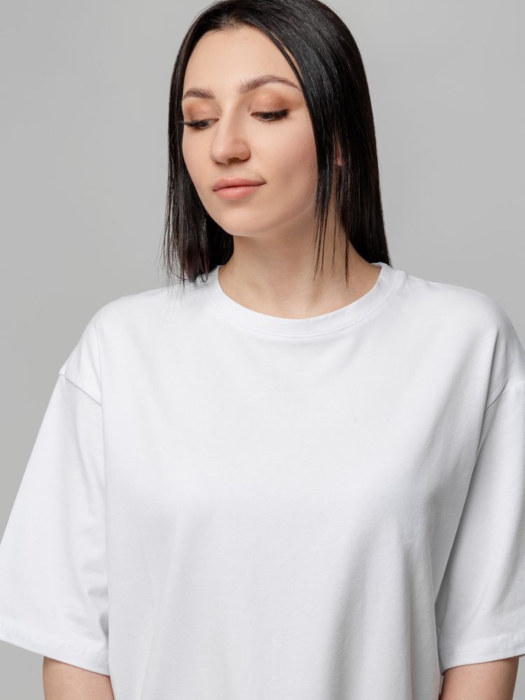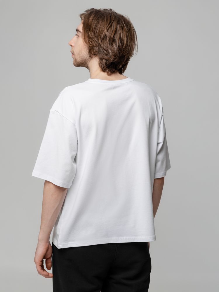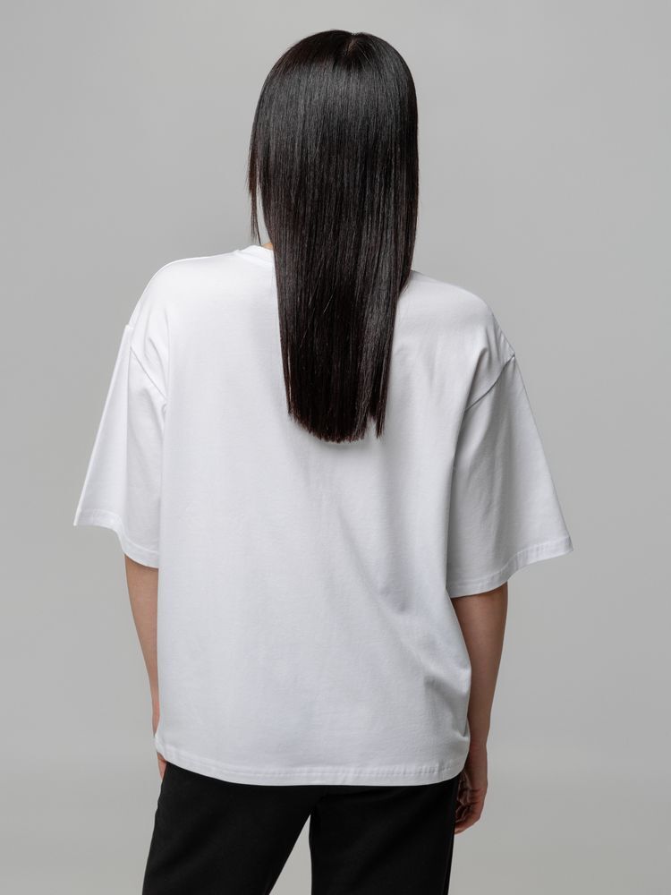 - Крой: свободный оверсайз с боковыми швами, что позволяет легко комбинировать футболку с различными элементами одежды.