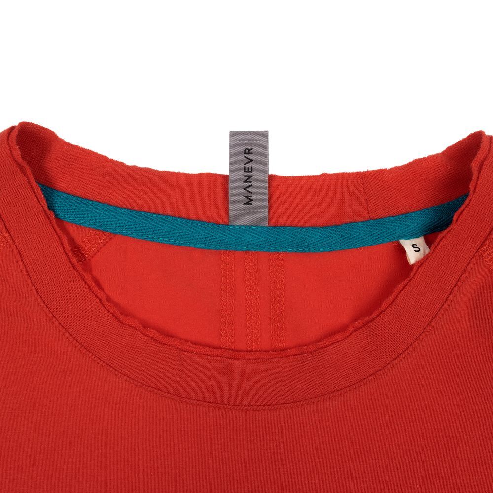 - Детали: открытые края по горловине, рукавам и низу, контрастная лента укрепления горловины — добавляют стильные акценты.
