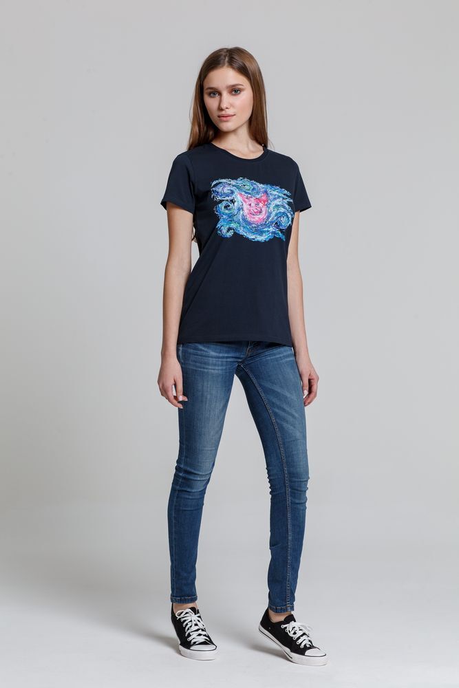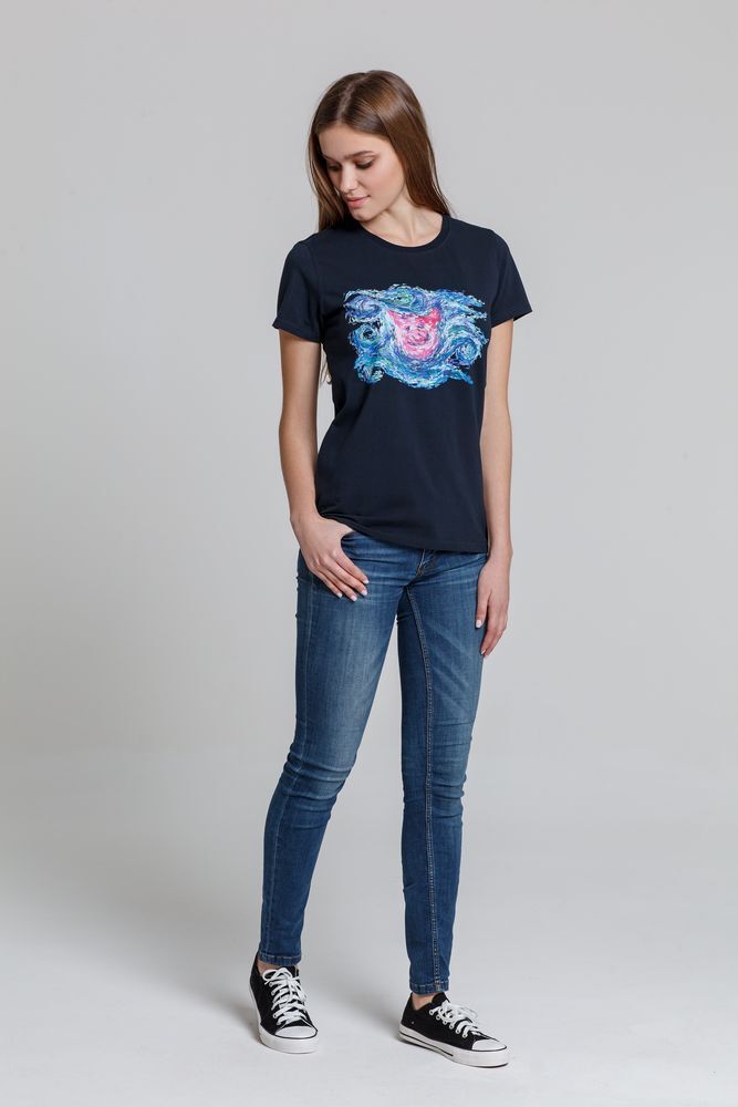 Футболка женская «Ван-Пиг», синяя: Искусство и Комфорт в Каждой Детали