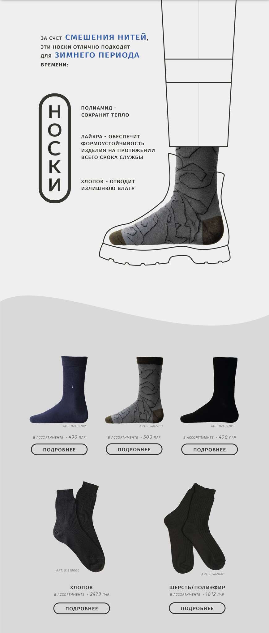 Выбирая наши носки, вы обеспечиваете своим сотрудникам комфорт и защиту, что способствует повышению производительности труда. Не упустите возможность улучшить условия работы ваших сотрудников с помощью качественных носок из 100% хлопка!