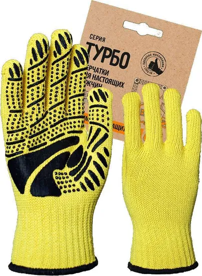 Перчатки трикотажные с ПВХ 'ТУРБО' желтый/черный